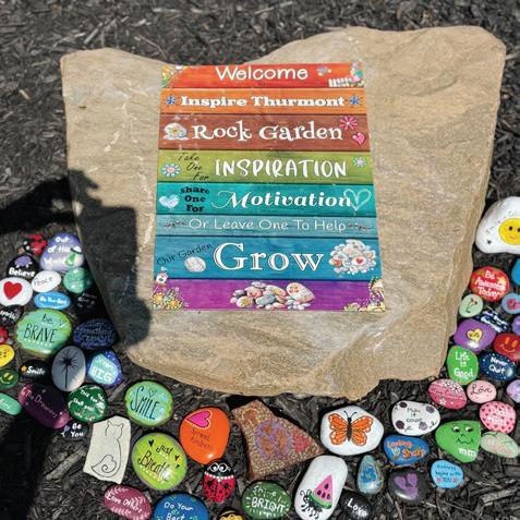 she envisioned on the back of an empty wall on the back of the basketball court in Community Park. The second component to Inspire Thurmont was to spread kindness and joy through rock painting and creating several, “Be Kind” rock gardens throughout the town of Thurmont. Ms. Schafer thought that public places with Be Kind rock gardens would be for those of all ages to pick up a rock and take it with them with a message that just may make someone’s day. To make this happen we relied on the Thurmont Community to paint rocks with Be Kind messages, and wow, did the community come out in full force. In July of 2026 two Be Kind rock gardens were created with over 300 inspiring painted rocks donated from Thurmont and Carroll Valley. Obviously, to keep this going forward, we ask folks to keep filling them up. In addition, the town will also hold a rock painting session each