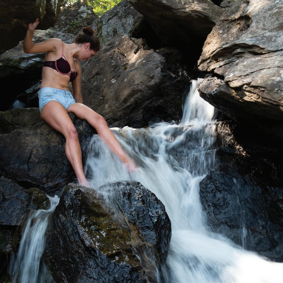 Justine Keaner, of Damascus, explores the falls at Cunningham Falls State Park.