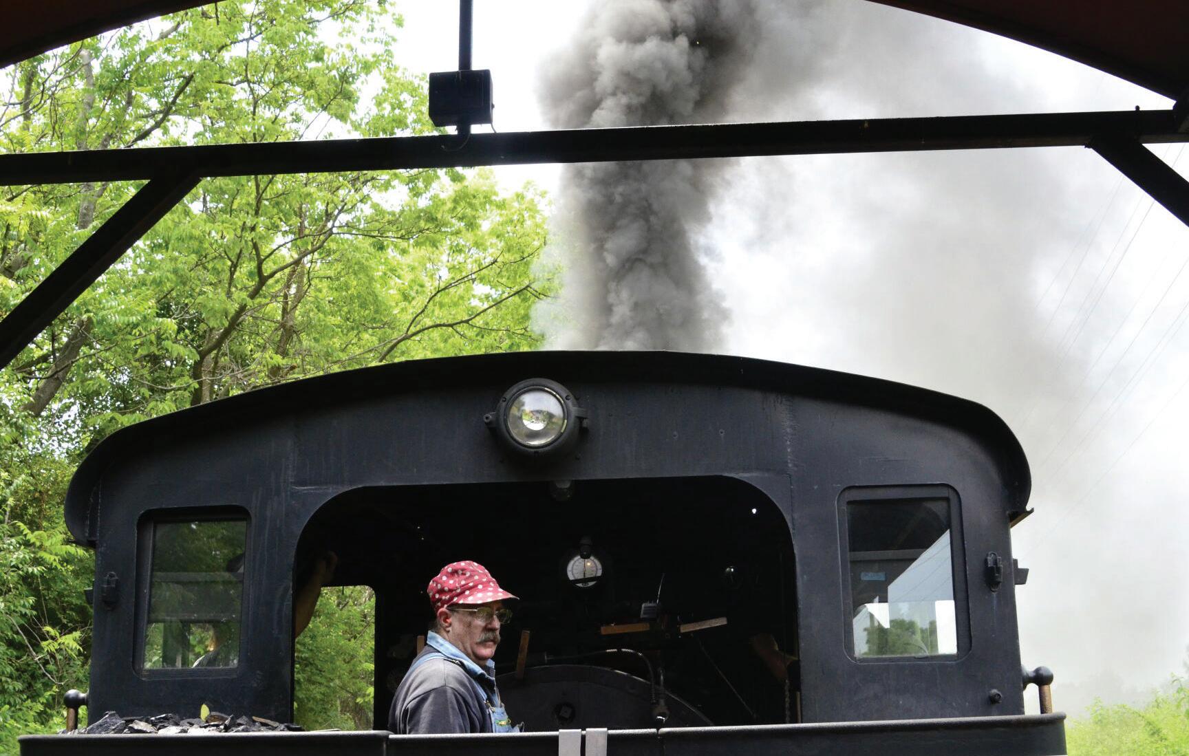 Brandon Seyfried shovels coal to power the train on a Walkersville Southern Railroad ride