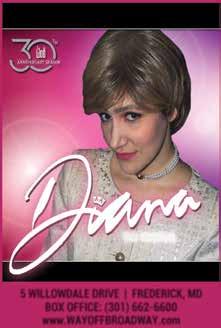 “Diana The Musical” — 12:30 p.m. at Way Off Broadway Dinner Theatre, 5 Willowdale Drive, Frederick. It’s 1981 and the world is hungry for a royal wedding — but is the 20-year-old bride prepared for what comes after? Following her storybook union, Princess Diana faces a distant husband, an unmovable monarchy, and overwhelming media scrutiny. But her modern perspective and remarkable compassion galvanizes a nation, even as it threatens the royal family’s hold on England. Prices vary. 301-662-6600. wob@wayoffbroadway.com. wayoffbroadway.com.