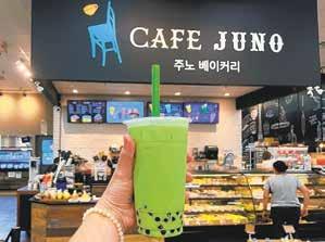 Honeydew milk tea at Juno Bakery & Cafe, inside H Mart in Frederick.
