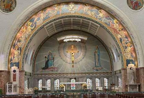 The experience of walking through the dimly lit display areas showcasing her life and emerging into the “saint” area of the visitor center that tells the story of her 1975 canonization felt like an emergence from trials into heaven. The high altar of the basilica is visible from this large vestibule, which features a giant painting of St. Seton standing floating above the Earth. The wall exhibitions explain the Catholic theology of saints. The most succinct summary comes from St. Seton’s own nephew, Bishop James Roosevelt Bayley, who is quoted as saying, “If the prayers of a righteous person on earth avail much, oh! How much