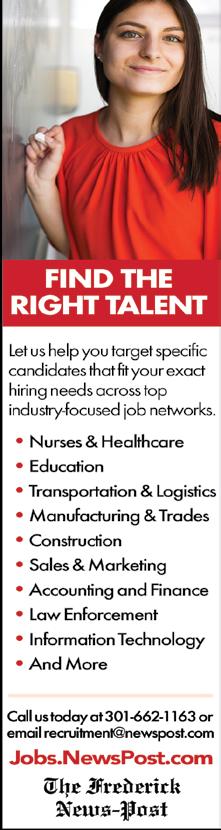 26 | Thursday, OcT. 6, 2022 | 72 HOURS October 8, 2022- January 29, 2023 Washington County Museum of Fine Arts 401 Museum Drive, Hagerstown 301-739-5727 | wcmfa.org | Free admission Peter Berns,Ohne Titel (Der Kuss)/Untitled (The Kiss), Color woodcut Published in PAN IV, Volume 2, 189 64th Annual Friday andSaturday 9AM- 5PM M Celebration of our heritage in AmishCountry • Over 100 work ingartisans • Pennsylvania DutchFood • Hayrides • Music AllDay ww w.springspa.org 814-442-4594 •1711 Springs Rd., Springs, PA 15562 We regret due to experience,only ser vicedogs areallowedduringFestival days YOUare vital in our strategic role to success. Available positions are: Production Workers,Structural Engineers,Estimators,Accountants,and more Apply today! 301-874-5141 4010 Clay St. PointofRocks,MD21777 USTED es vital en nuestraestrategia hacia el éxito. Lospuestos disponibles son: Trabajadores de producción, ingenieros estructurales,estimadores, contadores,ymás ¡Aplicahoy!301-874-5141 4010 Clay St. PointofRocks,MD21777 CSC IS GR OW ING,E XPAN DIN G, AND HI RING IN FR EDE RIC K! CSC ESTÁC RE CIE ND O, EXPAND IE ND O, YCONT RATA ND OE NF RE DER ICK!