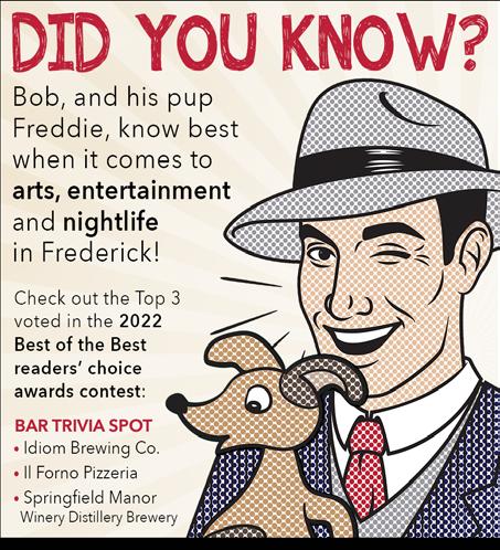 72 HOURS | Thursday, Nov. 10, 2022 | 25 Hours: Fri. 6-9 PM ·Sat.9 AM -3 PM Admissio n: $2.00 daily ·S enio o r s : $ 1 . 5 0 (Chi ldren under 10, FREE) ) Sponsored by: TRI-STATEFFARM TOY COLLECTOR’S CLUUB FRI. &SAT., NOV 18 &19 TO BE HELD AT WASHINGTON COUNTY AGRICULTURAL EDUCATION CENTER 7303 Sharpsburg Pike Boonsboro, MD 21713 For in fo ,c al l 240 -6 75- 514 8 35thANNUAL FARM TOYSHOW AR TISTS ALLEY Shoff ShoffPromotions Promotions FREDERICK COMIC CON SUNDAYNOVEMBER 20 • 10 am -4pm • Gold, Silver, Bronze & Modern Age Comic Books • Anime, Pulps, Games, Pokemon & Magic Cards, Mini Figures • Super Heroes Toys, Pop Toys, Art • Hobby & Gaming Supplies, Sci Fi Toys INFO:shoffpromotions.com COSPLAY WELCOME Frederick Clarion Inn (next to the FSK Mall) 5400 Holiday Dr 21703 Admission: $8 cash; 12 and under free EARLYADMISSION at 9:30am- $15 cash Free Parking! CHRISTMASOPENHOUSE Nov. 11, 12, 13 &Nov 18, 19, 20 OldeHomestead 310 SouthMain Street, Boonsboro • 240-329-9353 • www.olde-homestead.com • ChristmasDecor, Snowmen, Santas, Gnomes, Trees, Ornaments& more • Candles &Florals • Unique Gifts&Crafts • Pictures, Lamps &Furniture • Curtains,Linens, Bedding &Rug s • Jewelr y, Handbags, Scar ves& Gloves 10% OFF Rugs, Linens, Pictures FREE Gift with Purchase More Sales &Door Prizes FREE Layaway •Gift Cards Available •Like us on Hours: Mon.- Sat. 10 to 5; Sun. 12 to 5 Formoreinfoand rules, contact Carolyn Etzler-Doyle •grannyetz@yahoo.com 240-215-2104 (text)