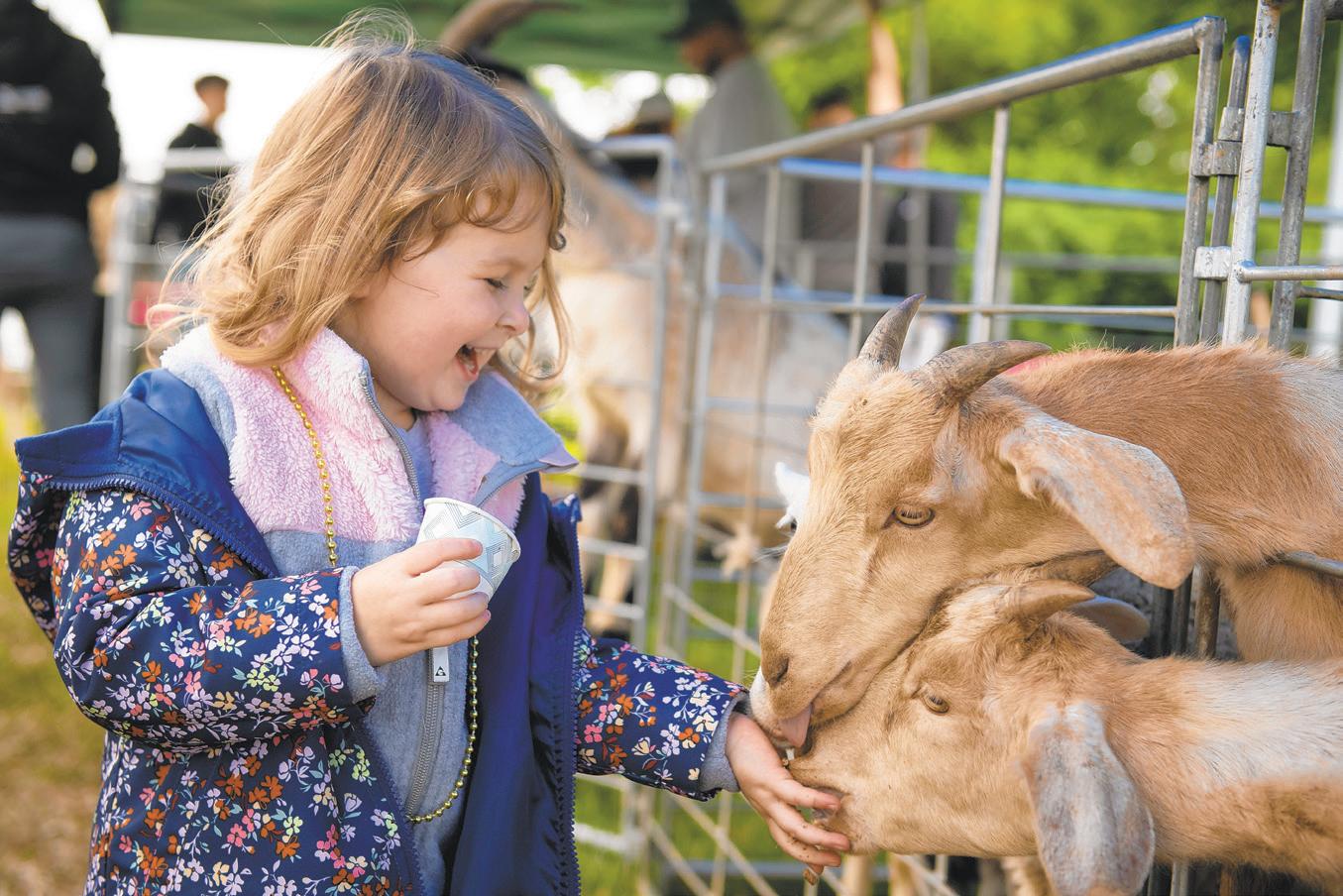 Ava Albee feeds goats at the petting zoo during Jefferson’s 250th anniversary event at Jefferson Ruritan Grounds in May.