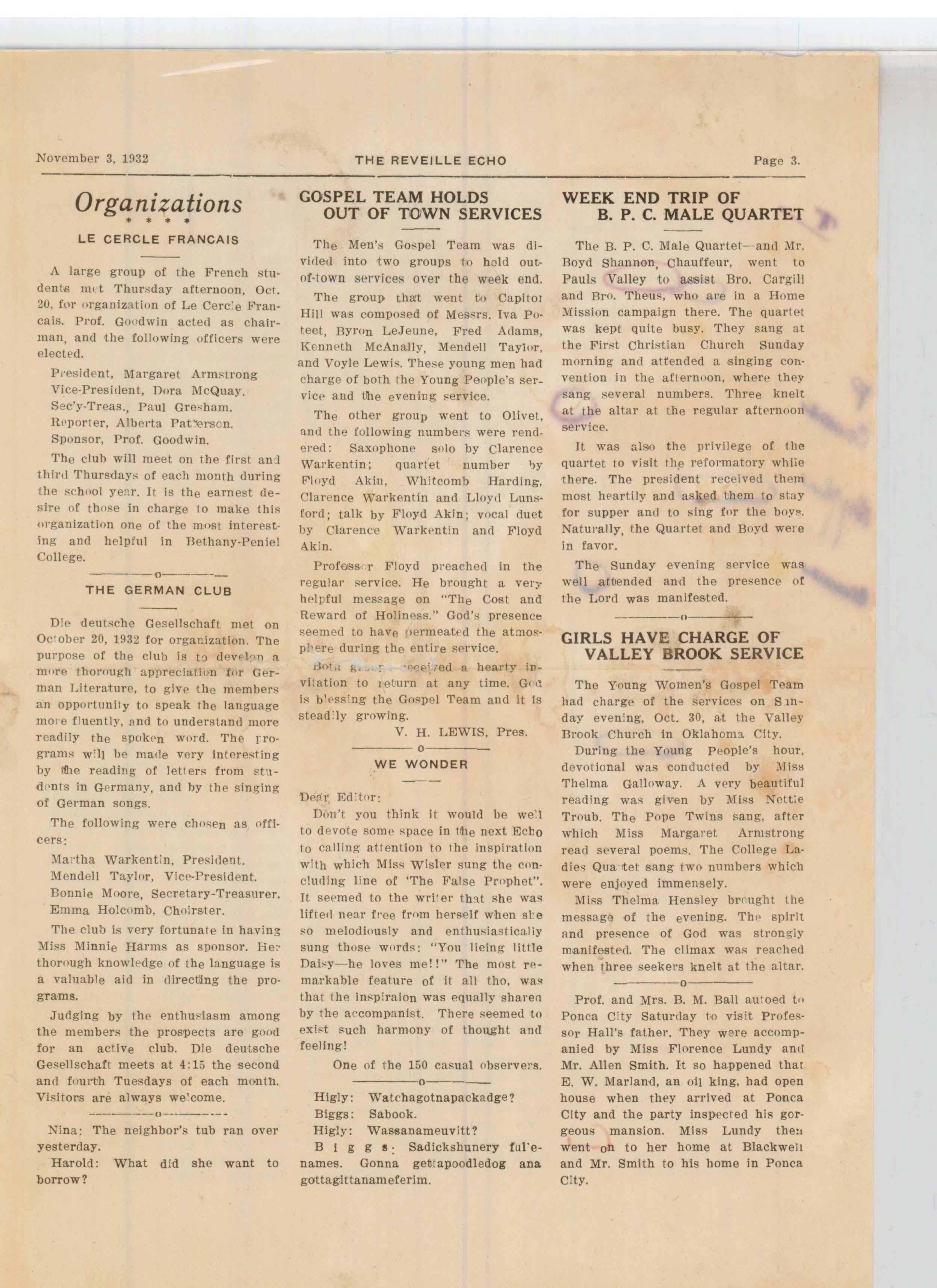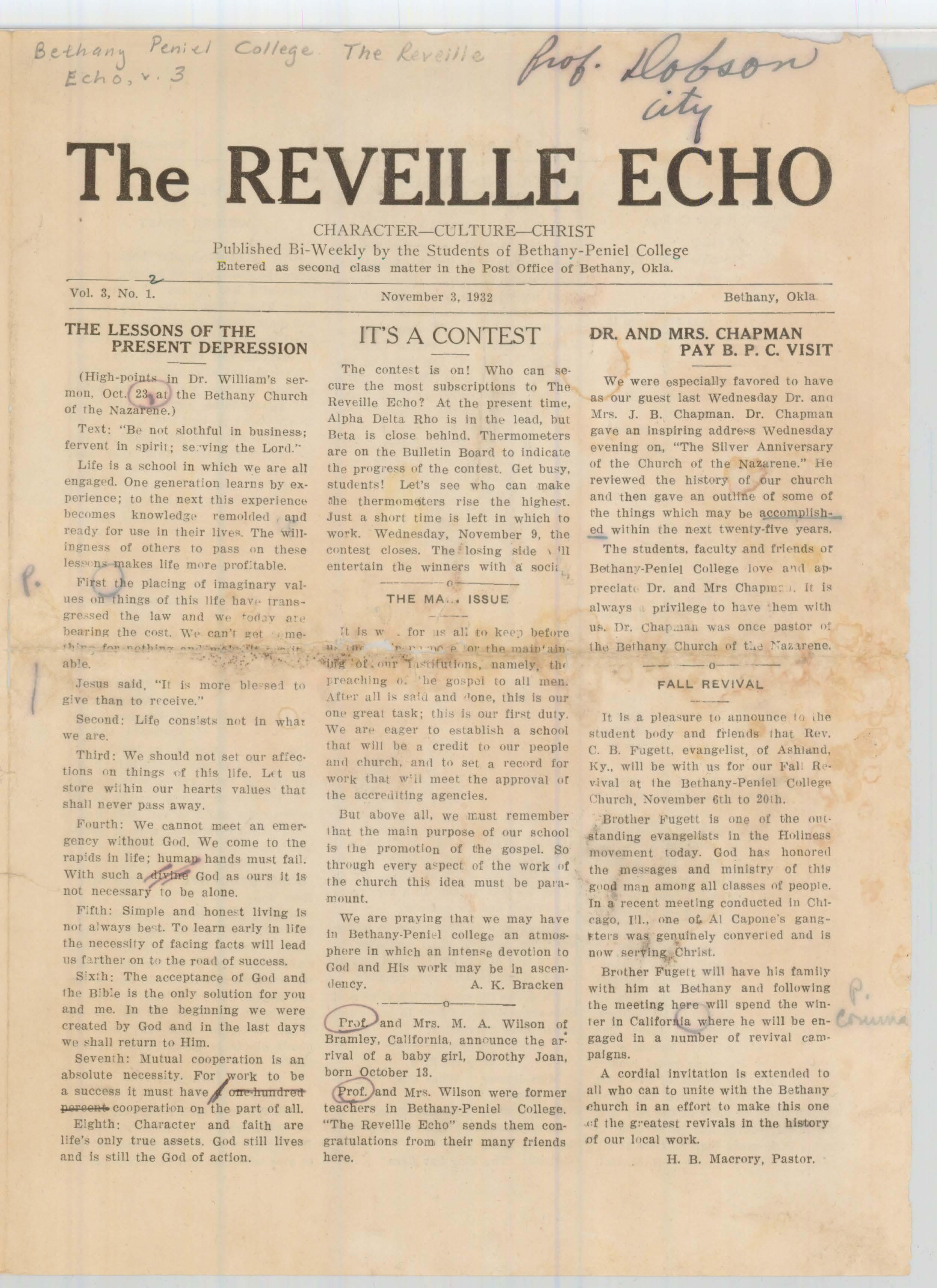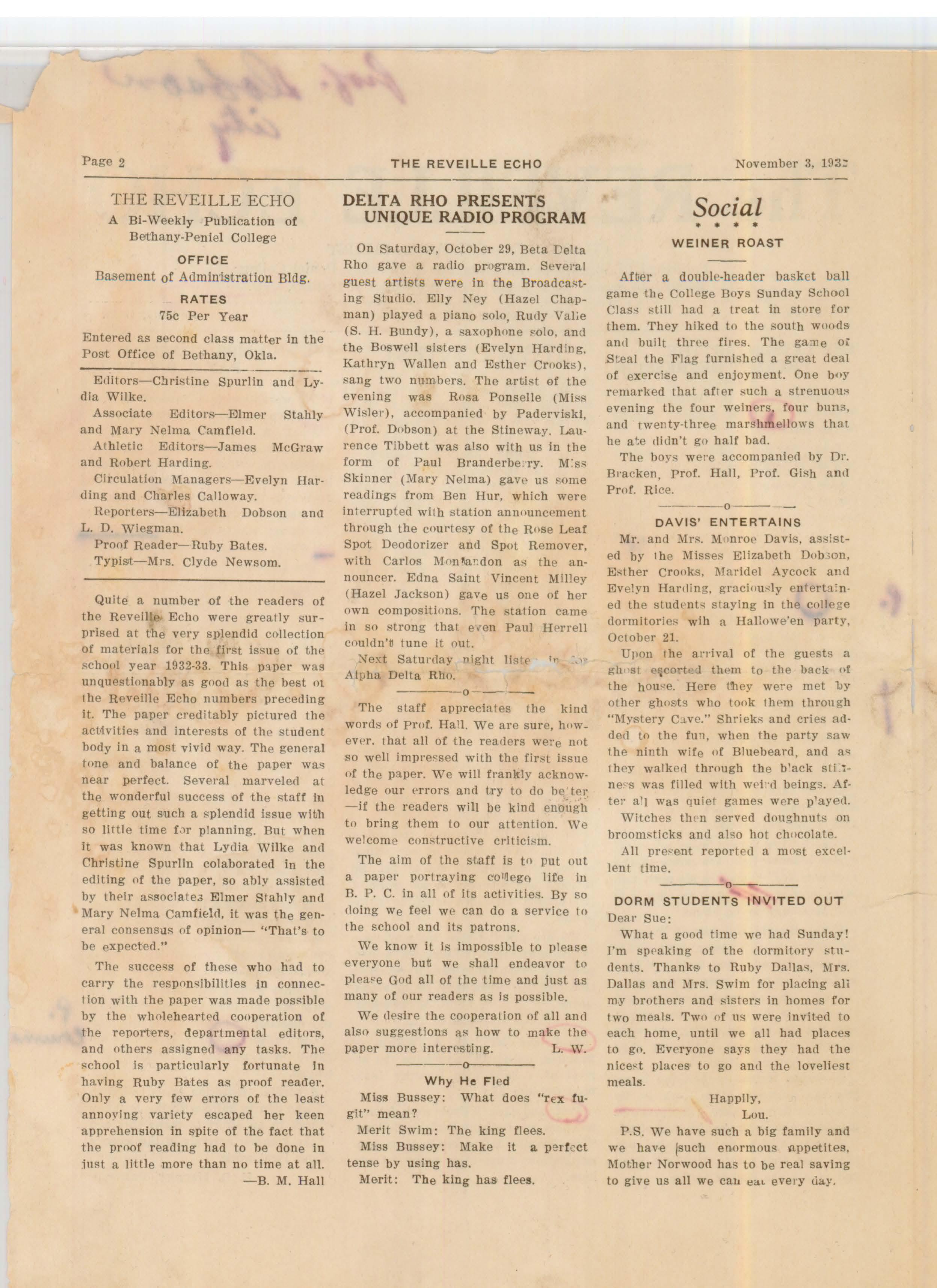The Reveille Echo Vol. 3 No. 2