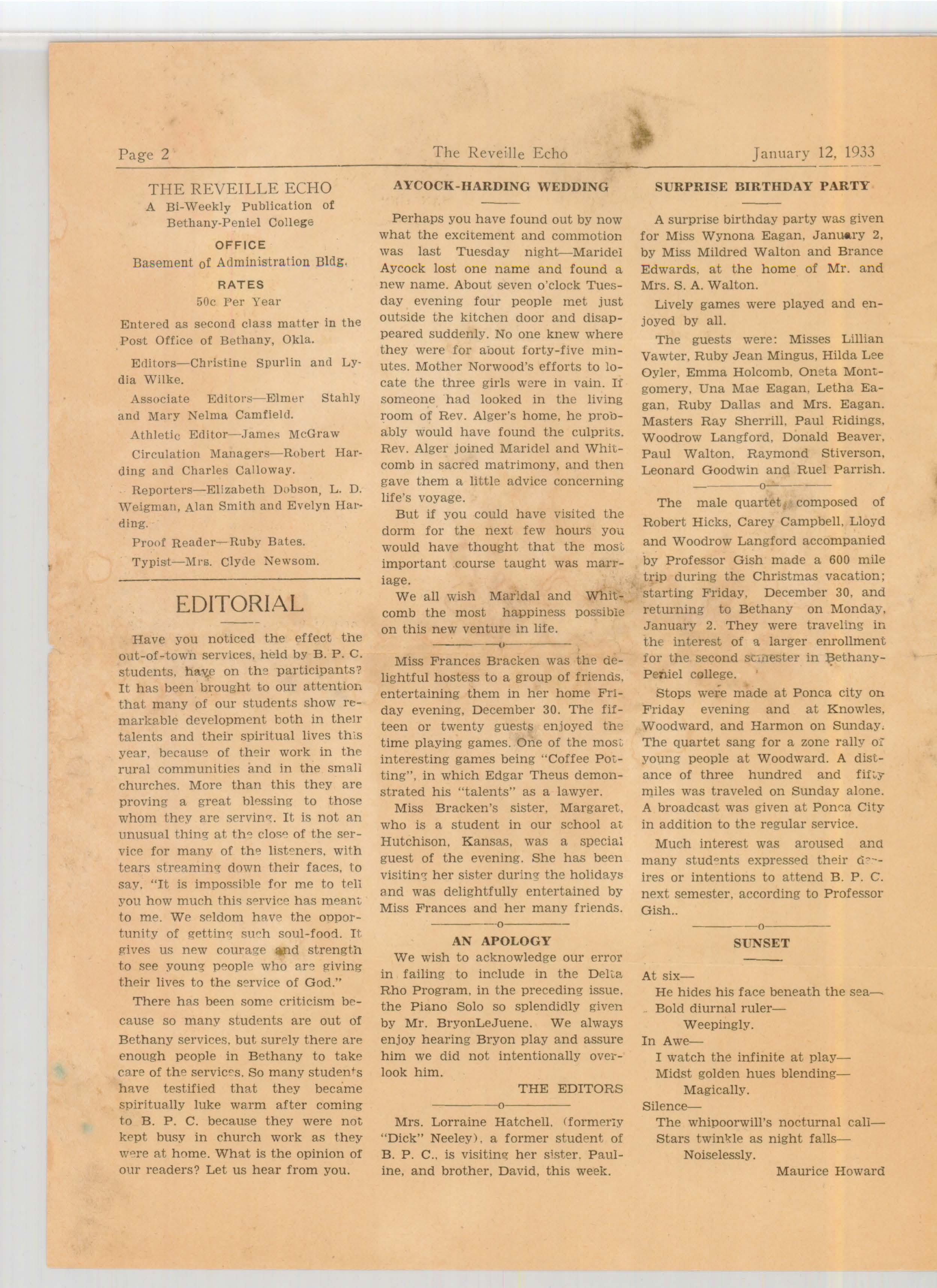 The Reveille Echo Vol. 3 No. 6
