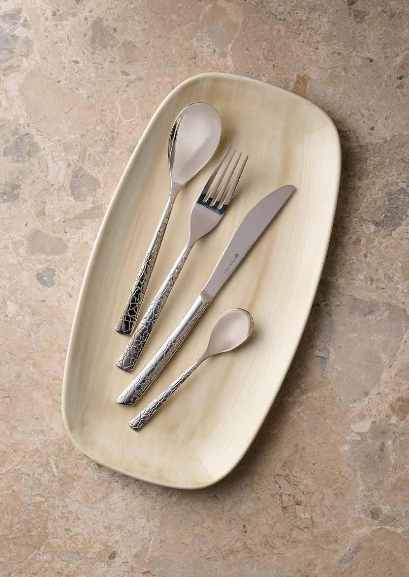 Eleganti posate aggiungono valore alla tavola, valorizzando nel complesso, l’esperienza culinaria Progettate dal nostro team di esperti, le posate Churchill sono state realizzate con cura per garantire praticità e prestazioni elevate per esclusivo utilizzo professionale. Vi presentiamo le posate Kintsugi per l’autunno 2023, caratterizzata dalla texture craclè sono reaizzate sulla forma Evolve. Rifinite in acciaio inossidabile 18/10 di alta qualità, le posate Kintsugi sono progettate per completare il portafoglio di articoli Churchill.