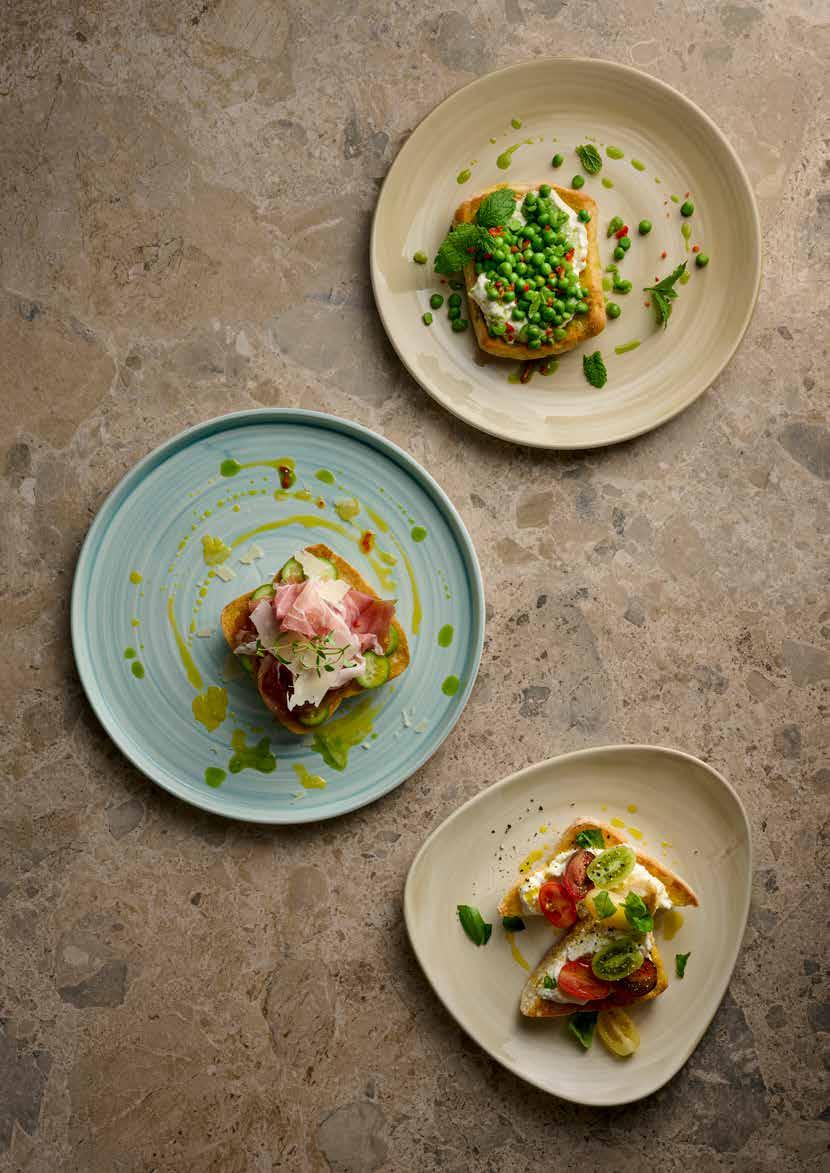 Stonecast es una emocionante colección de productos rústicos decorados a mano inspirados en los cambios de estación y en ingredientes frescos. Decorado a mano, terminado con un fino moteado y borde rústico en color marrón dorado, Stonecast está diseñado en diferentes estilos para adaptarse a todo tipo de ambientes hosteleros. Nuevas formas de platos con borde y boles orgánicos están disponibles en Stonecast para el otoño de 2023, junto con nuevas bandejas de degustación contemporáneas, presentadas en una gama de los colores originales de Stonecast, ideales para mezclar y combinar en la mesa. También se presenta Stonecast Java Blue, un tono azul fresco perfecto para una presentación vibrante de los alimentos. Mezcle Java Blue con los tonos brillantes de Tangerine Orange y Mint Green para conseguir un aspecto atrevido, o combínelo con Peppercorn Grey y Blueberry para obtener una paleta de colores variables.