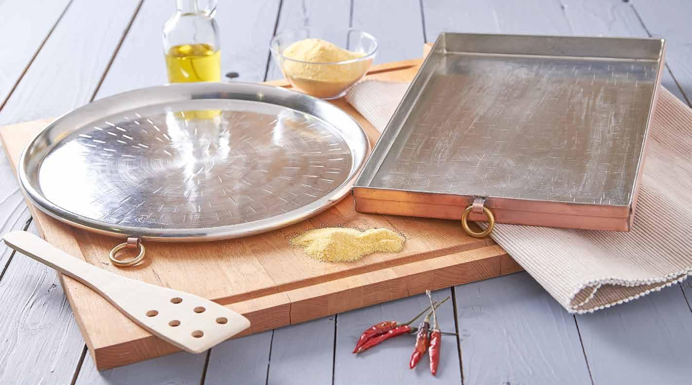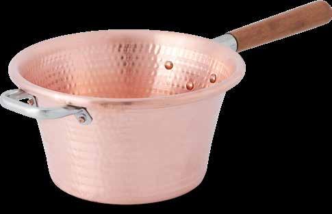 Pots and other items for culinary use are tinned by hand by our masters of tinning, using virgin tin according to the law. Only some items, which because of specific recipes, have to be without tin , like e.g. the Paiolo-Pot for Polenta, Polsonetto – a bowl with wooden handle used for preparing Zabaione, or a Bastardella used for beating eggs e.g..