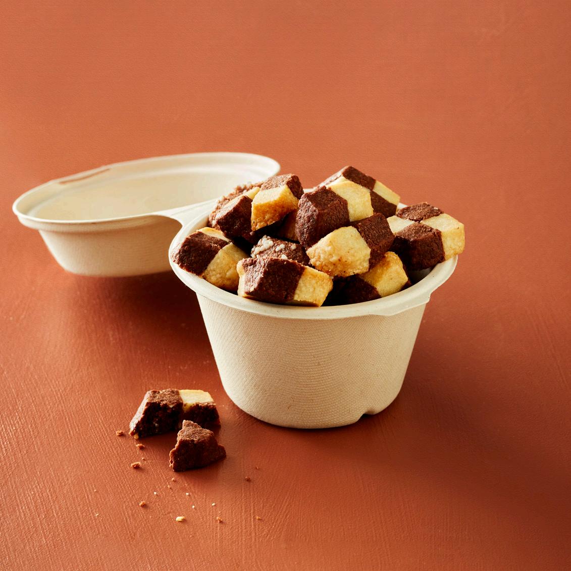 Bagasse, max. +100 °C, empfohlen für kurzzeitige Verwendung und Lagerung