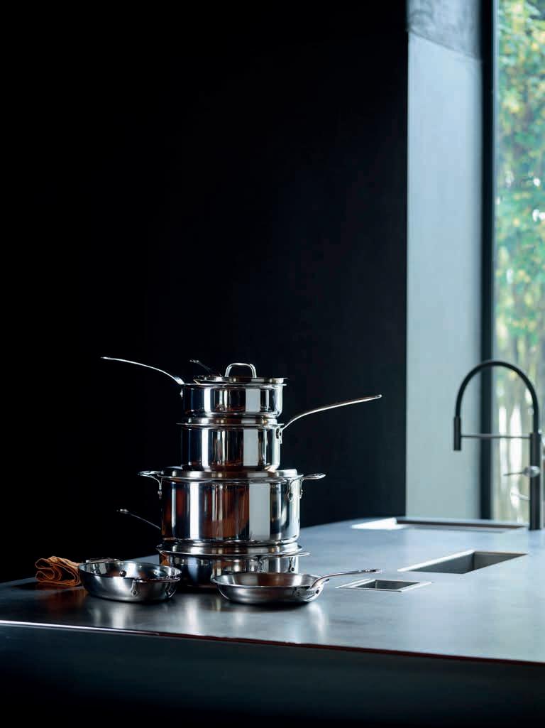 La scelta incontrastata di Master Chefs ed intenditori esigenti. Professionale ed elegante prediletta per show cooking e cucine front cooking. Dove l’utensile si fonde con la tecnica culinaria, e la vicinanza all’artista e la dimensione umana dell’esperienza rendono questo momento unico e memorabile. Costruita con metalli di prima qualità per garantire bellezza e prestazioni nel tempo. Manici in acciaio inox resistenti al calore progettati per fornire una presa sicura ed ergonomica. Finitura lucida, fissati saldamente ai corpi con rivetti in acciaio inossidabile assicurano equilibrio e stabilità. I corpi integralmente in multilaminato garantiscono un riscaldamento rapido e uniforme. Interno in acciaio inossidabile 18/10 satinato, anima in alluminio trilaminato, esterno in acciaio inossidabile per induzione con finitura a specchio. Risultati professionali sempre garantiti grazie al metallo rivestito che incorpora l’elevata conducibilità termica dell’alluminio e l’elevata resistenza dell’acciaio inossidabile. Spessore medio 2,7 mm. Adatto ad uso su tutti i fuochi inclusa l’induzione.