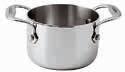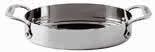 The undisputed choice of Master Chefs and demanding connoisseurs. Professional and elegant favorite for show cooking and front cooking kitchens. Where the utensil blends with the culinary technique, and the closeness to the artist makes this moment unique and memorable by the human dimension of the experience. Constructed of premium metals for a lifetime of beauty and performance. Stainless steel stay-cool handles designed to provide a secure and ergonomic grip. Mirror finish, securely attached to the pan with stainless steel rivets they assure balance and control. Bonded body construction all the way to the rim for fast and even heat throughout the pan. Interior in 18/10 stainless steel satin finish, 3-ply aluminum core, induction stainless steel mirror finish exterior. Professional results always granted thanks to clad metal incorporating high thermal conductivity of aluminum and high strength of stainless steel. Average thickness 2,7 mm. Suitable for use on all cooking hobs including induction.