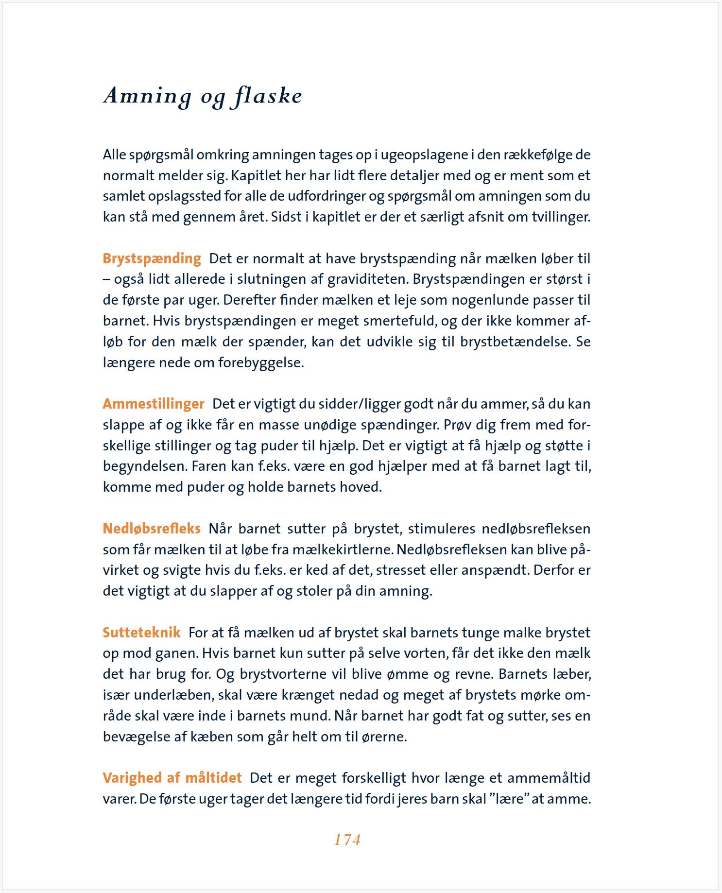 De vigtigste emner har alle lidt ekstra sider bag i bogen, hvor I får rigtig god hjælp. Det gælder f.eks. amning og flaske, sygdom og førstehjælp. Og så er der et helt afsnit om kost, som også har fine opskrifter på grød og mos.