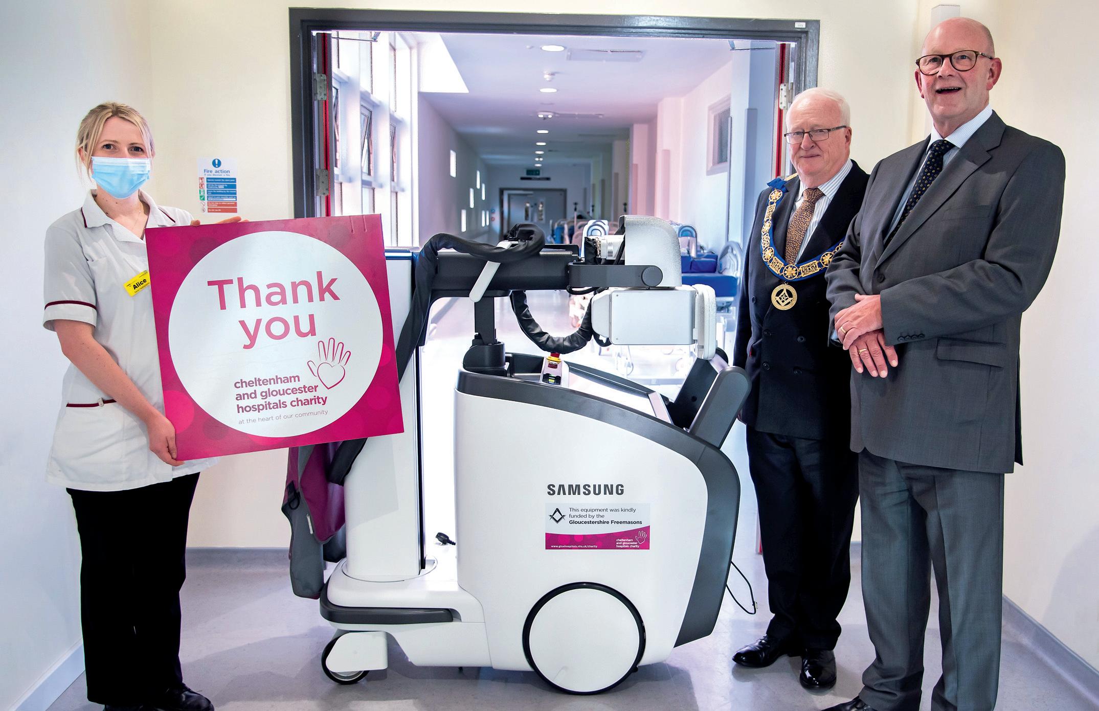 years with the aim of supplying essential mobile diagnostic equipment to hospitals across the Province. The amount donated by Gloucestershire Freemasons was £338,506, a sum achieved in just 18 months of the planned 24-month duration of the appeal. This enabled the purchase of 16 units of imaging equipment for the region’s Southmead, Cheltenham and Gloucester hospitals.