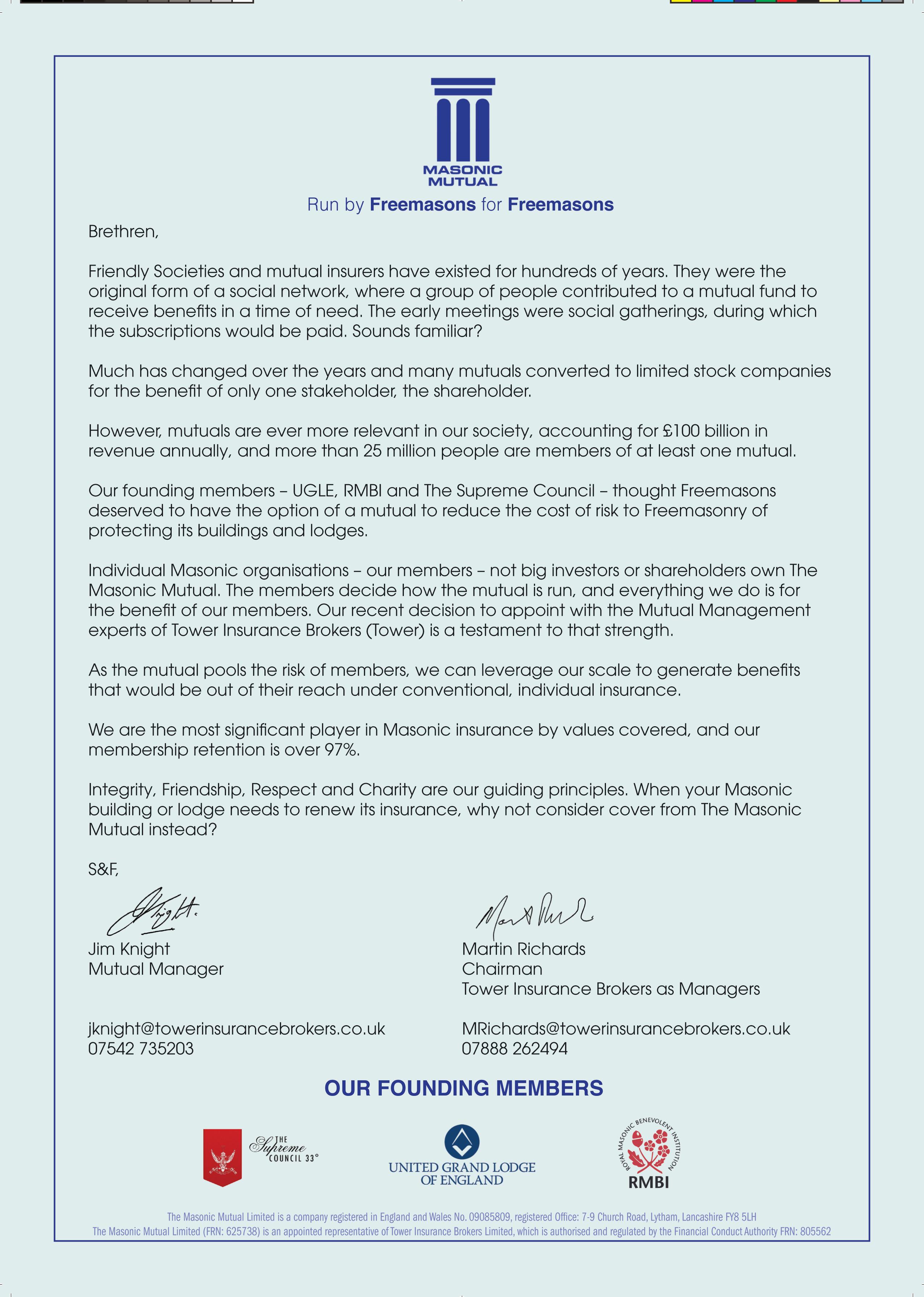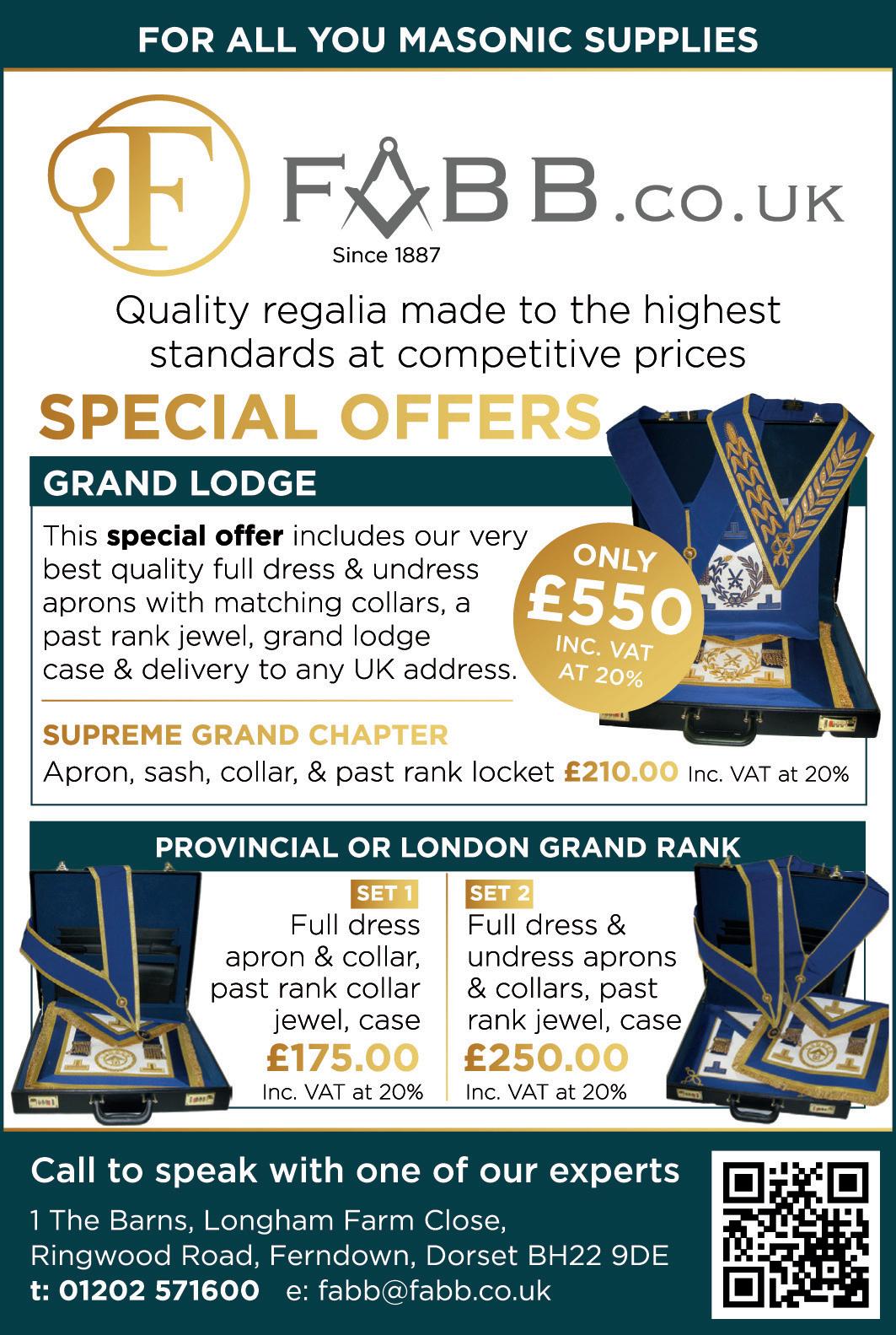 Advertising contact Ethan Hall ethan@square7media.co.uk 020 3832 2879 Square7 Media Ltd, 3 More London Riverside, London SE1 2RE Circulation fmt@freemasonrytoday.com 020 7395 9392