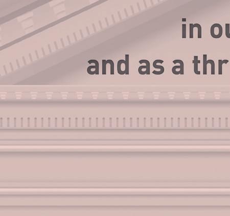 The temple is symbolically built using the key features of the Strategy, held in place by strong foundations. The three columns highlight our priorities of thriving membership, coherent organisation and community engagement