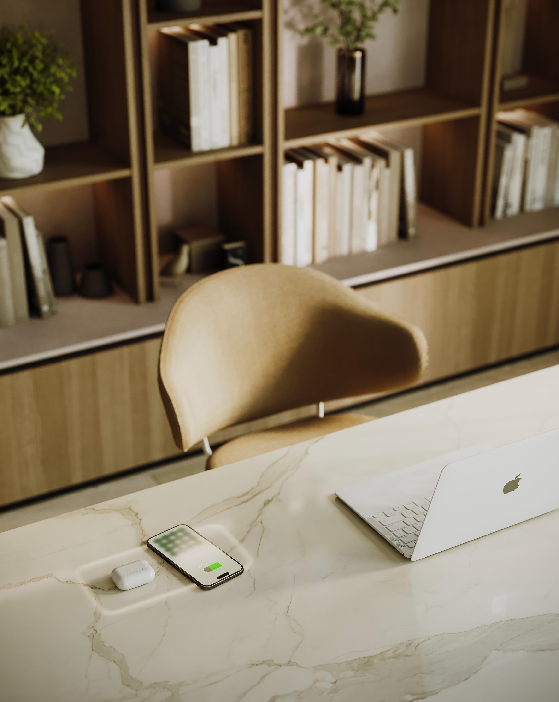 The first of its kind, FreePower is seamlessly embeded beneath stone countertops to create a sleek, futuristic experience.