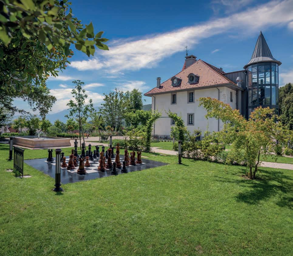 d’altitude à Serraval, sur les hauteurs du lac d’Annecy, le Domaine Clarins est un jardin botanique alpin consacré à l’observation et à la culture des plantes. Mélisse, sanicle, joubarbe, gentiane, herbe de bison, rose des Alpes... sur 15 hectares, une trentaine d’espèces y sont cultivées en agriculture biologique sur un terrain acquis en 2016 par Christian et Olivier CourtinClarins, les fils du fondateur de la marque. Même le labourage est confié à des chevaux afin de travailler la terre sans la brutaliser, ce qui permet de préserver la qualité des sols et respecter la biodiversité. À la clé, des plantes gorgées d’actifs, qui, après avoir été séchées