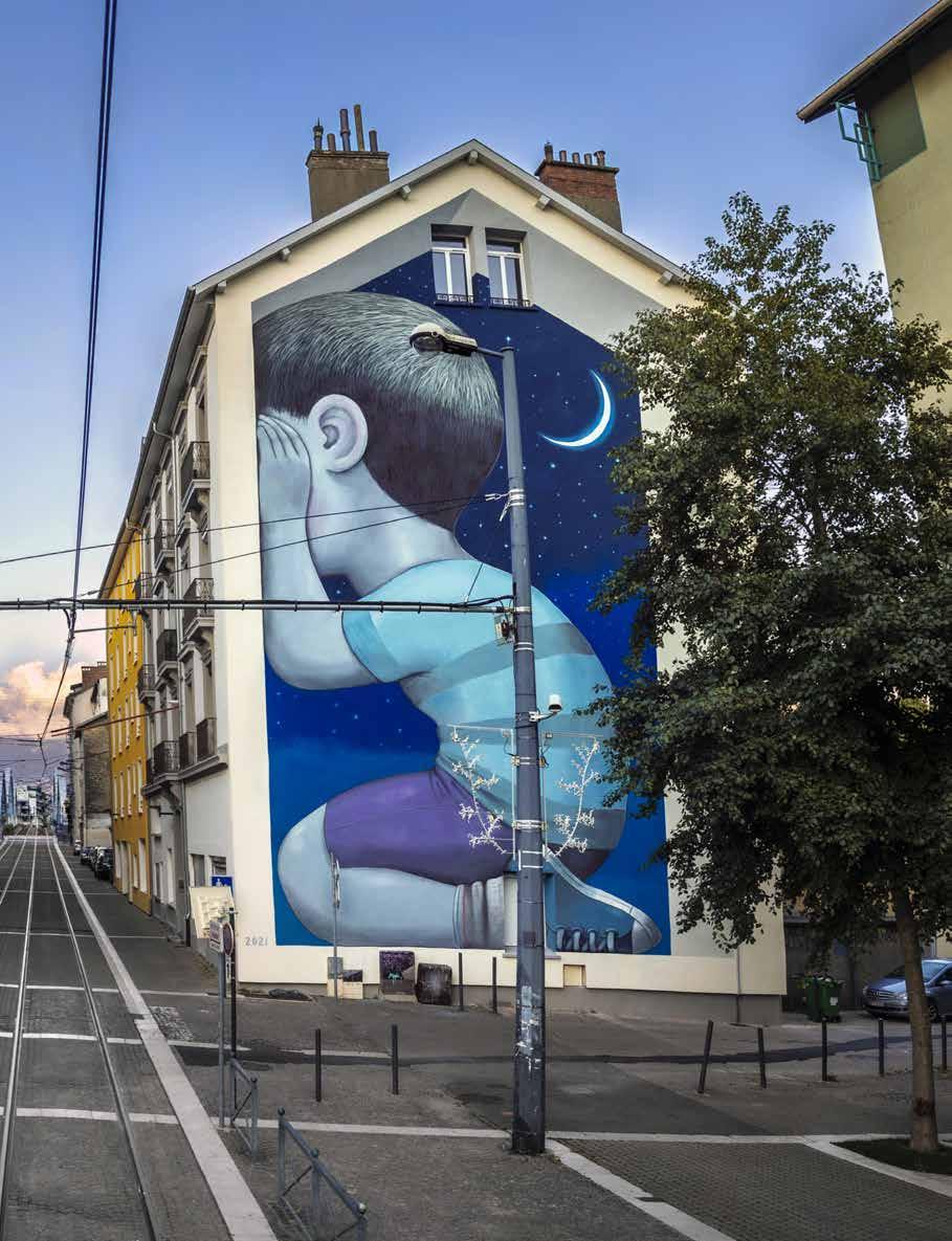 partie des 450 œuvres désormais disséminées dans la métropole grenobloise. Que ce soient les Français Seth ou Maye, la Chinoise Satr ou les Espagnols Sebas Velasco, Deih et Diego Vallejo, tous les artistes ayant découvert le territoire grenoblois se sont portés volontaires pour revenir peindre lors du festival. L’alchimie entre la métropole, les fresques et les montagnes fonctionne à merveille !
