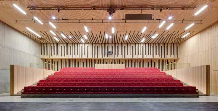 La communauté de communes du pays d’Alby souhaitait se doter d’un équipement d’envergure, comportant un programme culturel et sportif. Le choix de l’implantation à proximité d’un collège situé hors de toute agglomération est un premier pas vers la mutualisation. Ici se rencontrent tous les publics, le tout dans une gestuelle accompagnée par la couleur et les fleurs des revêtements que l’on retrouve malicieusement ici sur les fauteuils de la salle de spectacle.
