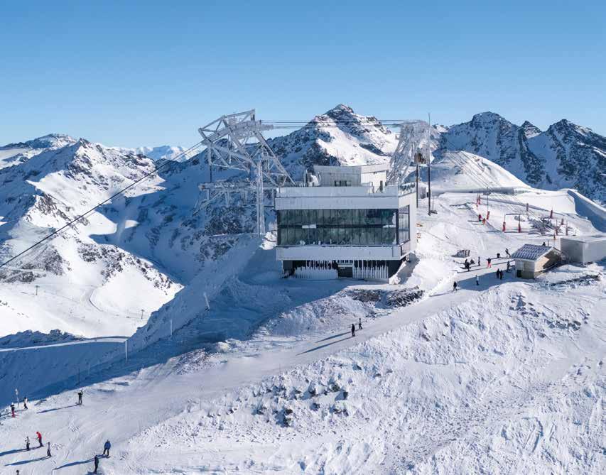 Inaugurated last winter, this complex offers a unique experience in the heart of the Alps: panoramic restaurant, wine bar, rooftop with a terrace boasting an incredible view, shop, and modular space that notably hosts exhibitions. As a bonus, an amazing 360° view over more than 1,000 peaks. Not to mention two brand-new cabins to welcome skiers and pedestrians from the 3 Vallées.