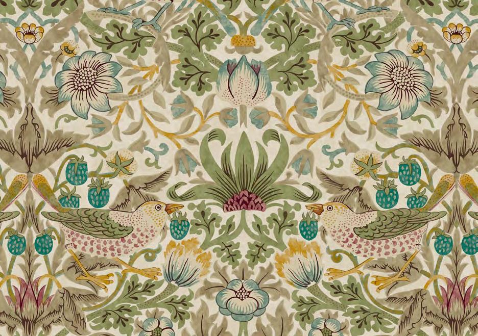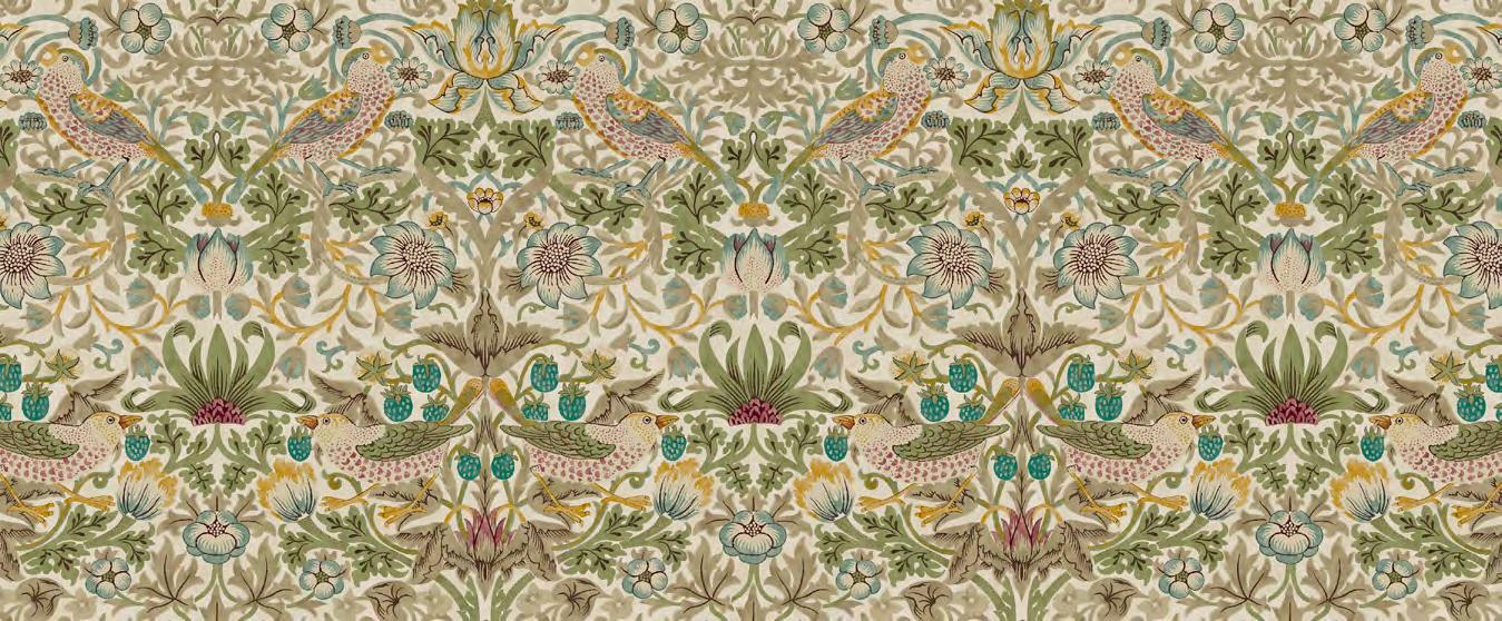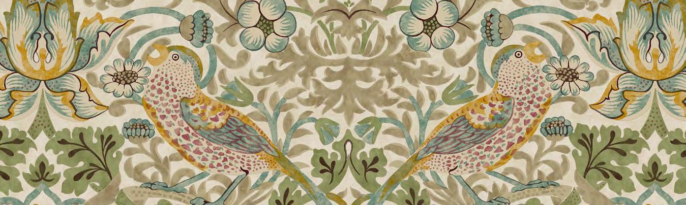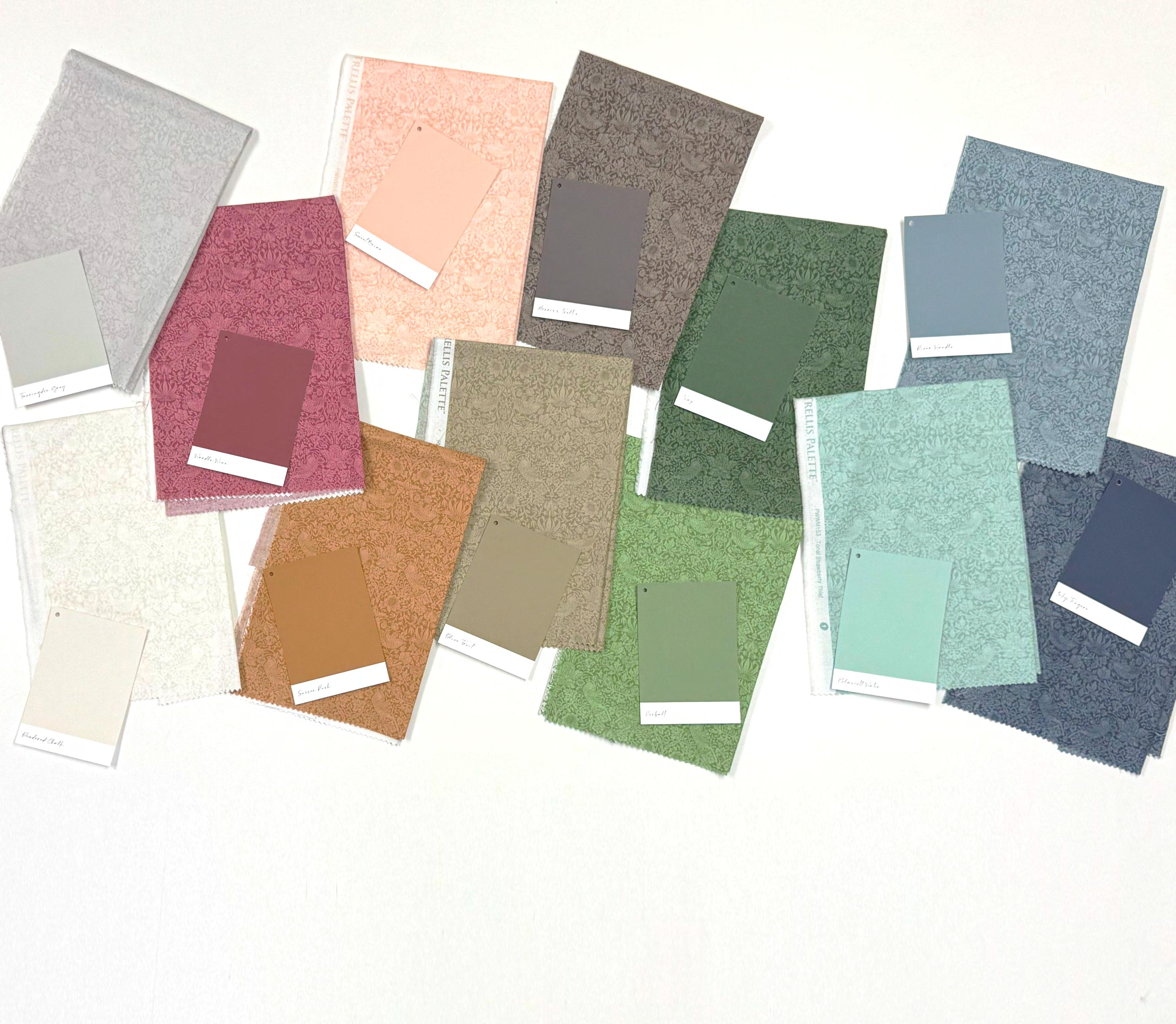 Inspired by the colour palette of Morris & Co.’s historic wallpaper catalogue and pairing perfectly with the new Morris & Co. paint colors, The Trellis Palette takes 160 years of colour heritage and reveals a curated collection of haberdashery fabrics, rich in tradition and giving the iconic Strawberry Thief new shades to revel in.