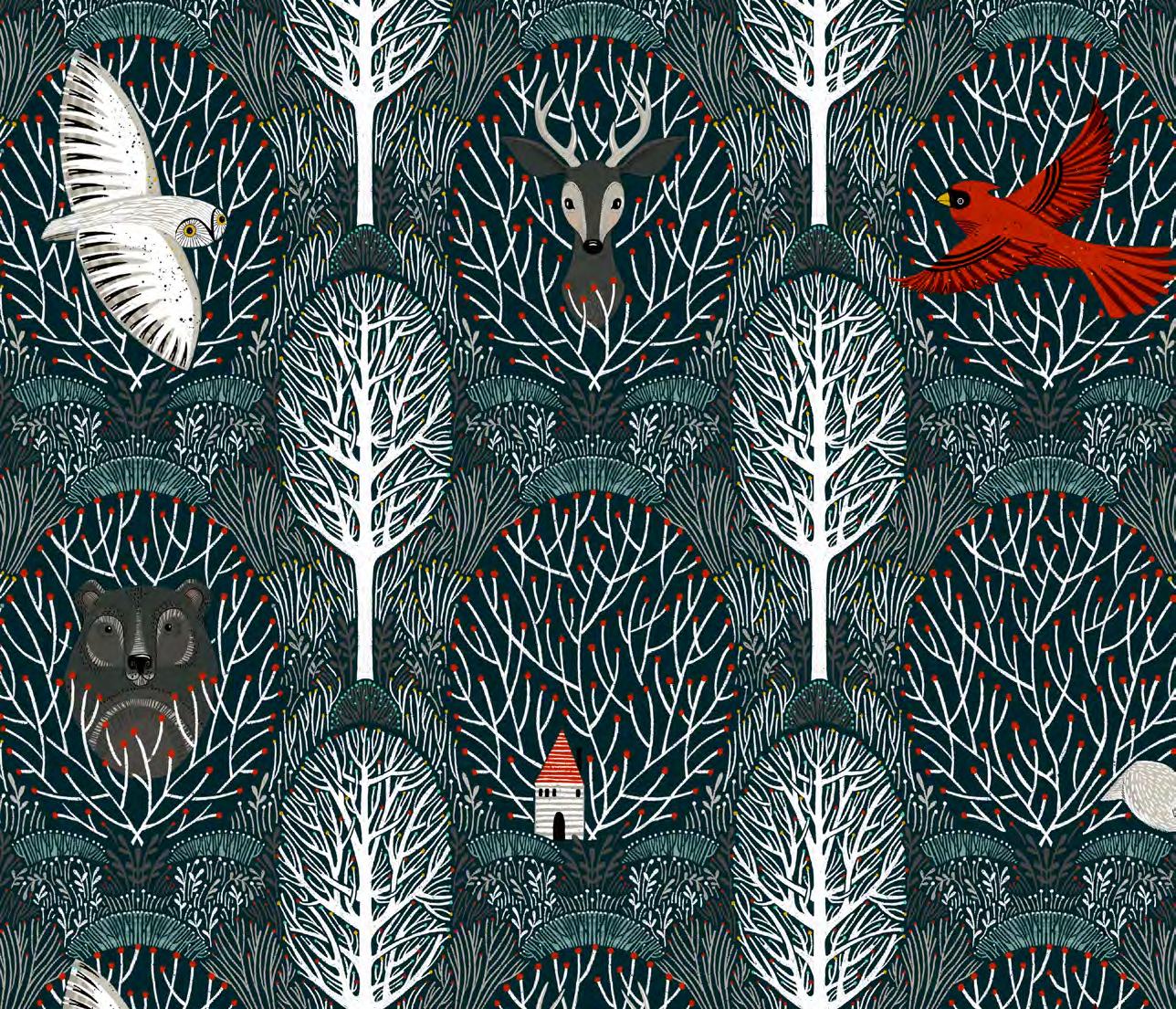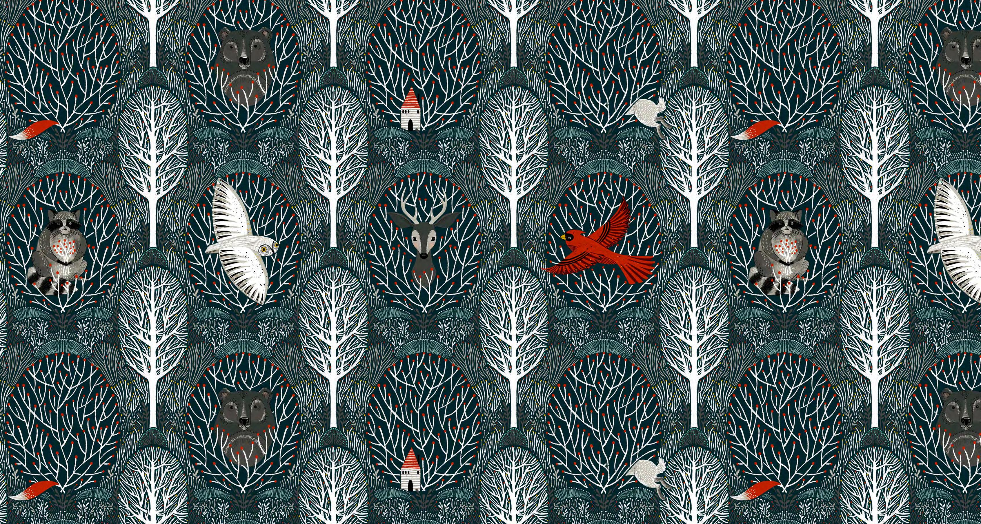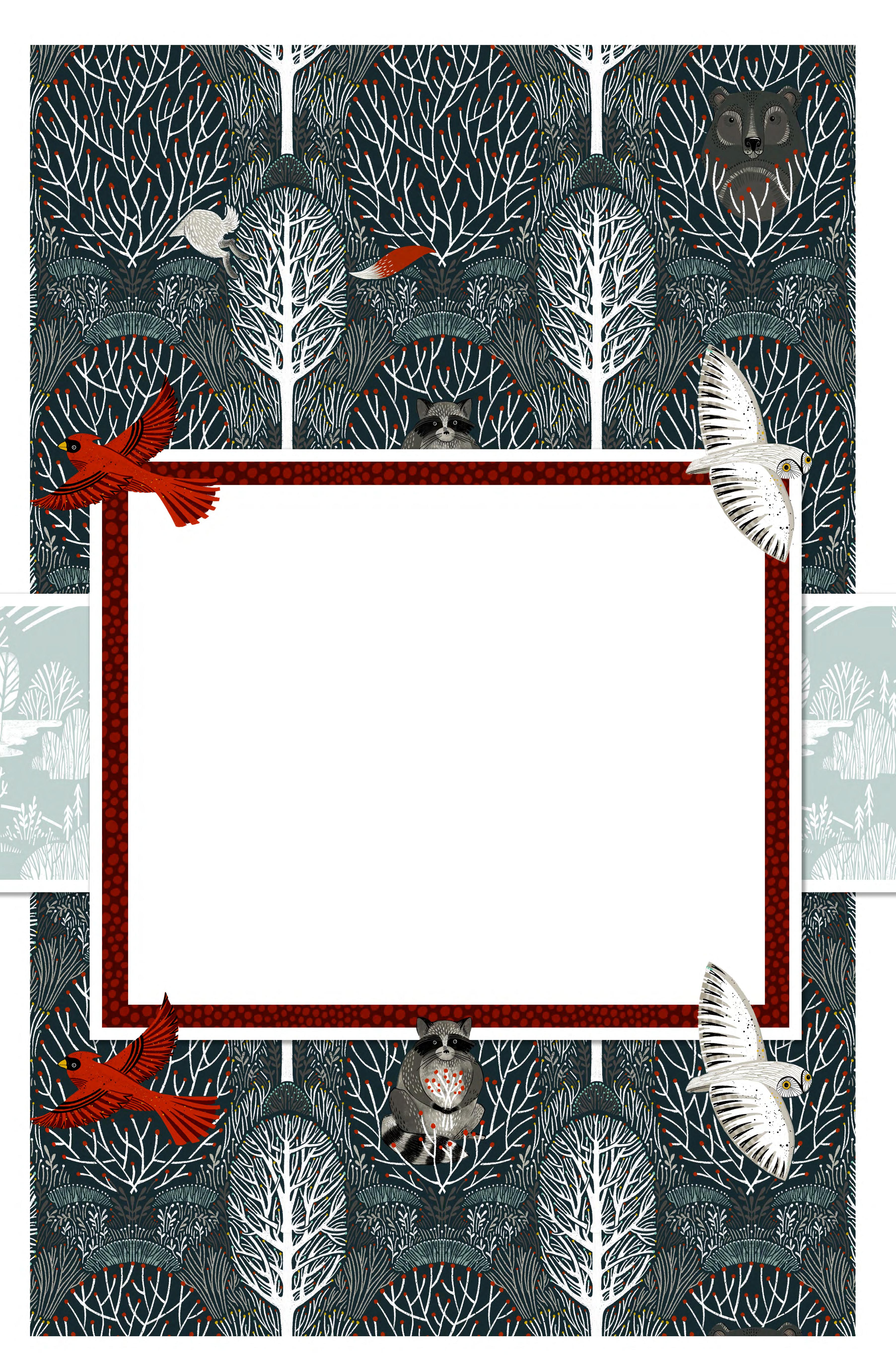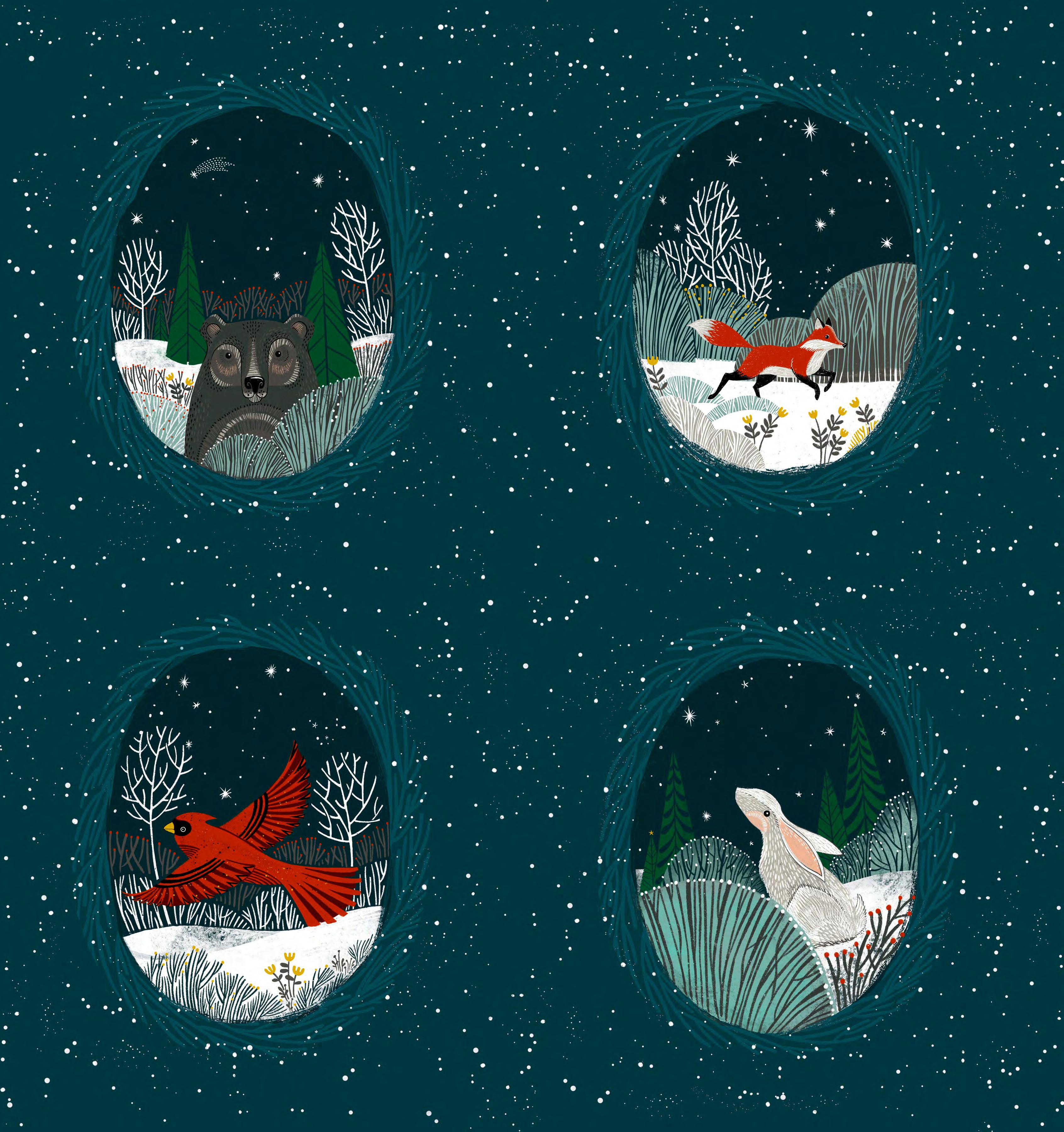 Drawing from the beauty of winter’s nocturnal world, the collection features beloved woodland animals—each a symbol of resilience, mystery, and grace. Shadowed evergreens stretch skyward, moonlight dances on snow-covered branches, and a sense of calm wonder permeates it all.