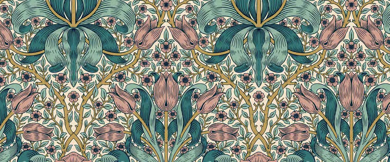 From the deep flatness of Inky Fingers, a colour founded by Morris as he tested the traditional indigo-discharge printing method at Merton Abbey, to Kelmscott Water, a delicate green-blue taken from the background colour of the Lily design (c. 1873), every shade has a richly layered story to tell. Embrace these 12 heritage hues in the new collection The Trellis Palette.