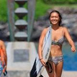 "Surfing to me is more about being entrenched in the ocean and being surrounded by the aquatic life,” she explains. “I love watching the light dance of the ripples in the water, the pull of the water off the reef when a set is approaching, the beauty of the talented surfers in the Islands riding waves of all sizes. My love for the ocean lifestyle is overwhelming and I am so happy to be able to play in the waters and surf these glorious natural wonders.” - Heather Brown