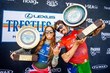 On the men’s side, Brazil’s Yago Dora unleashed a jawdropping aerial performance to win his second event of the year and third of his career. Against Kanoa Igarashi (JPN) in the Final, Dora kicked things off with a nearperfect 9.53, followed by an 8.37 to shut the door on Igarashi’s comeback. Dora, now ranked No. 2, heads to Brazil next for the VIVO Rio Pro—where he claimed his firstever CT win in 2023.