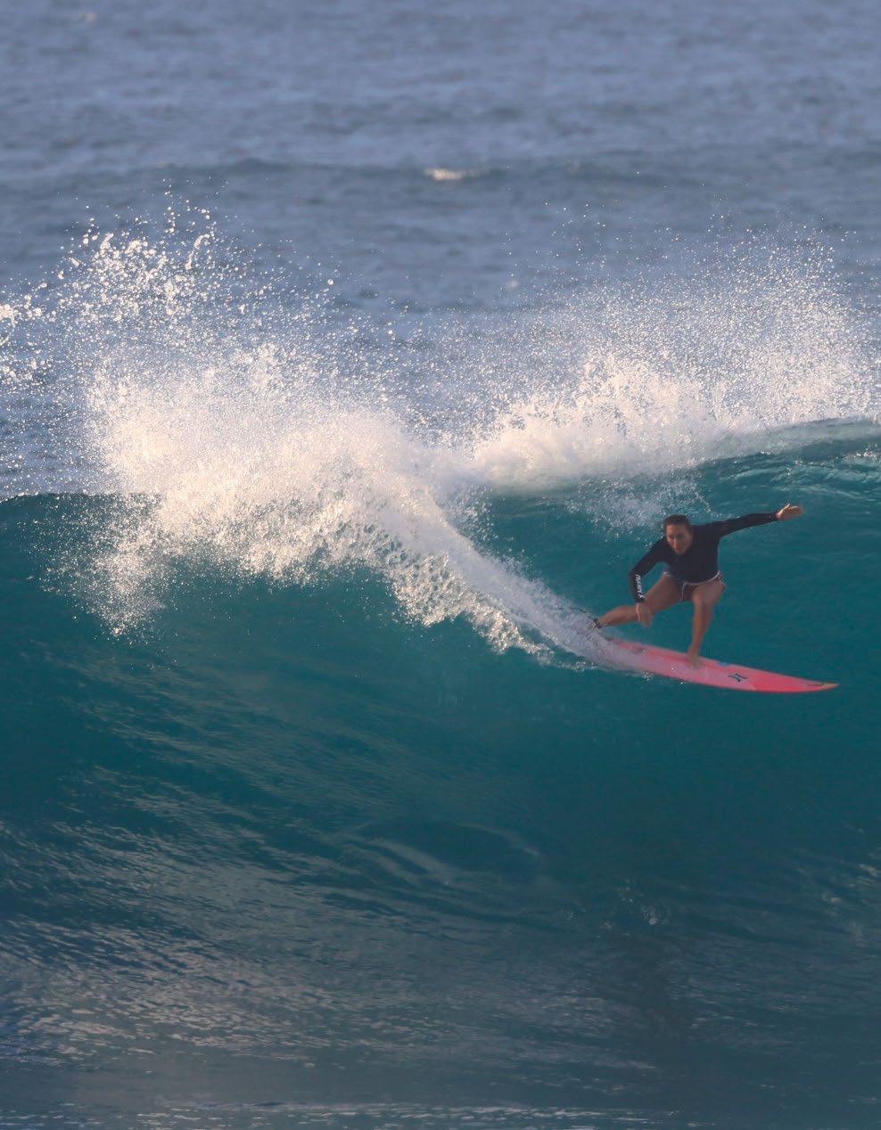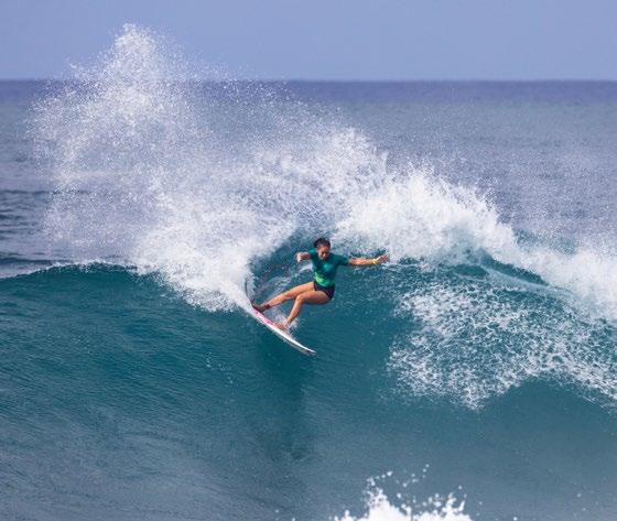 Turner, Legend Chandler, Tiger Abubo, Kahanu Rangel, Leah Turner, Ione Laturner, and Elliamna Grubbs. Mana Cazimero, Sunny Giles, and Zoey Kaina came from Oʻahu, and Kalei Rivas was what they call “FBI,” aka from the Big Island. Gotta give gratitude to official team parent Buck Giles and the other parents who traveled south to help! It was a fun-filled, feisty 12-day adventure with plenty of great surfing, a world of aloha, and of course a little intensity to keep things interesting.