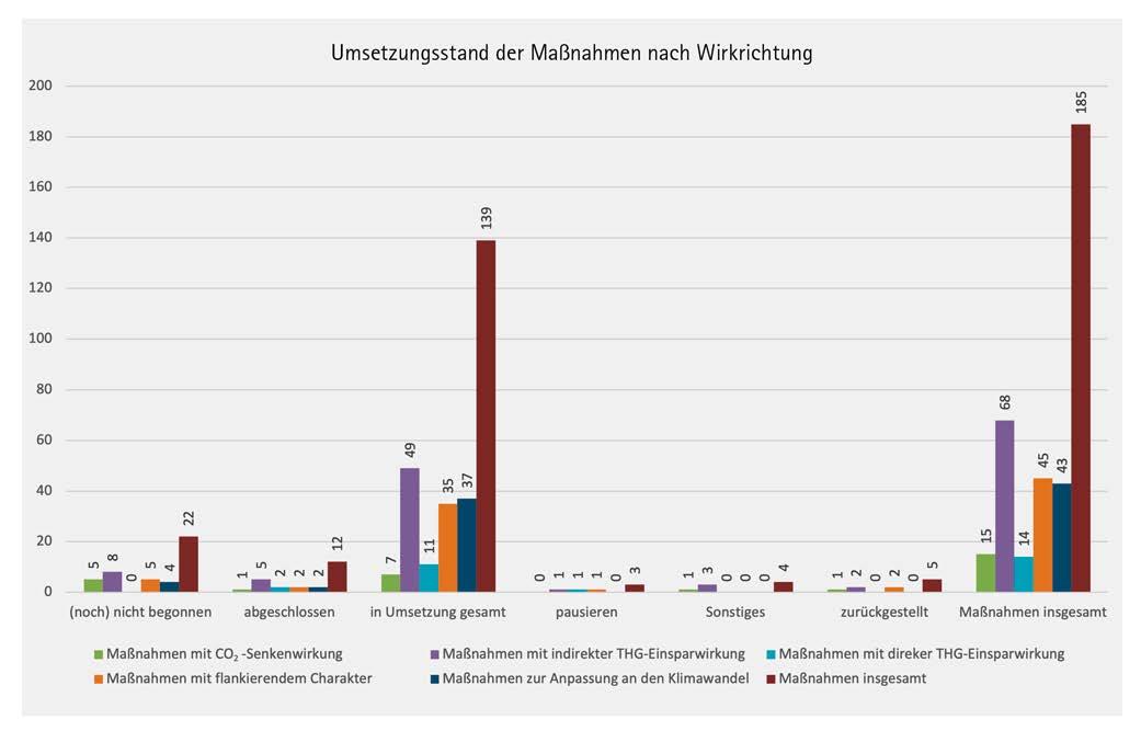 Diese Ziele sollen unter anderem durch Maßnahmen des Ausbaus und der Verstetigung von Instrumenten des kommunalen Klimaschutzes und der Klimaanpassung oder der Informations- und Beratungsangebote sowie der Unterstützung der Bilanzierung von Treibhausgasemissionen auf kommunaler Ebene erreicht werden.