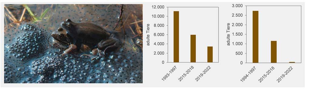 Abbildung 39: Bestandsentwicklung des Grasfroschs (Rana temporaria) in zwei Regionen in Sachsen ((b) – Raum Grimma, (c) – Raum Freiberg).