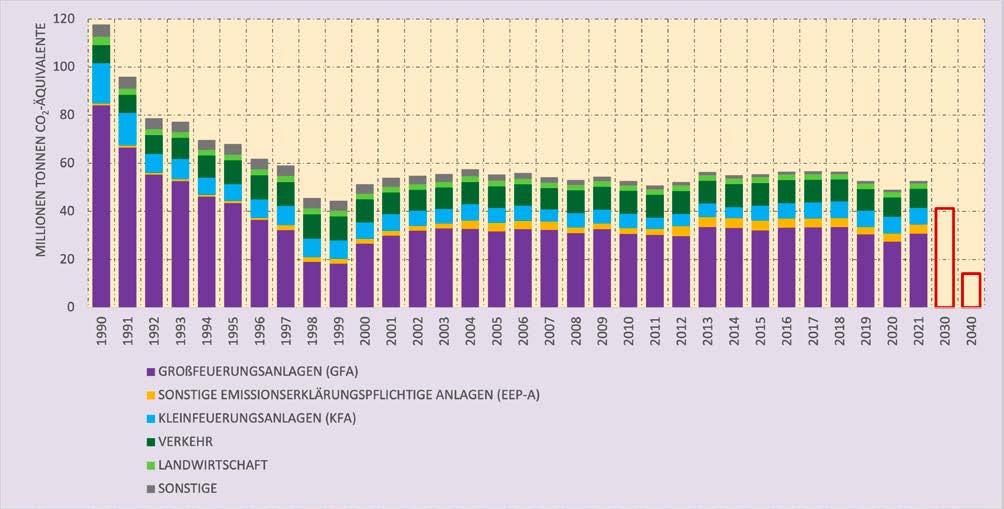 In Sachsen wird die Entwicklung der THG-Emissionen am Landesamt für Umwelt, Landwirtschaft und Geologie (LfULG) im Emissionskataster (Emikat) erfasst. Die drei bedeutendsten Treibhausgase Kohlenstoffdioxid, Methan und Distickstoffmonoxid (Lachgas) werden in CO₂-Äquivalenten (CO₂äq) erfasst. Im Jahr 2021 wurden in Sachsen insgesamt 52,7 Mio. t CO₂äq emittiert. Im Vergleich zum Jahr 1990 ist der THG-Ausstoß bis zum Jahr 2021 um 55 Prozent zurückgegangen, was vor allem auf die Modernisierung des bestehenden Anlagenparks in den 1990er Jahren zurückzuführen ist. Seit 2000 ist der THG-Ausstoß in Sachsen relativ konstant.