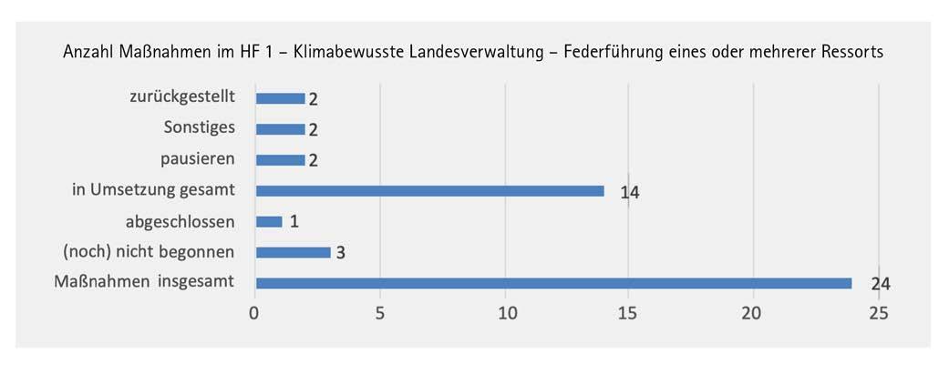 Tabelle 14: Maßnahmen des Handlungsfeldes 1 – Klimabewusste Landesverwaltung –in Federführung eines oder mehrerer Ressorts zum 31.12.2023 27