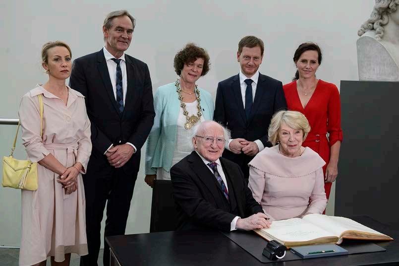 von links nach rechts: Ayleena Jung, Oberbürgermeister Burkhard Jung, Beate Schücking, Präsident Michael D. Higgins, Ministerpräsident Michael Kretschmer, Sabina Higgins, Annett Hofmann