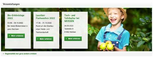 Seit dem Jahr 2017 gibt es das Regionalportal Regionales Sachsen.de , auf der Anbieter sich und ihre regionalen Produkte vorstellen, Regionalinitiativen bekannt gemacht werden und Spezialitäten entdeckt werden können.