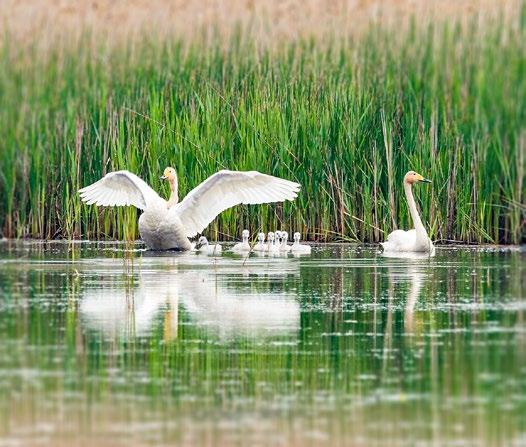 Neben typischen Vogelarten der Wälder lassen sich auch seltene Wasser- und Watvögel auf den zahlreichen Stillgewässern beobachten.