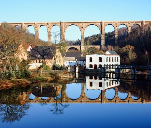 Durchs Elstertal schlängeln sich Wanderwege und Elstertalbahn. Imposant verbindet die Elster talbrücke zwei NSG: Das verträumte