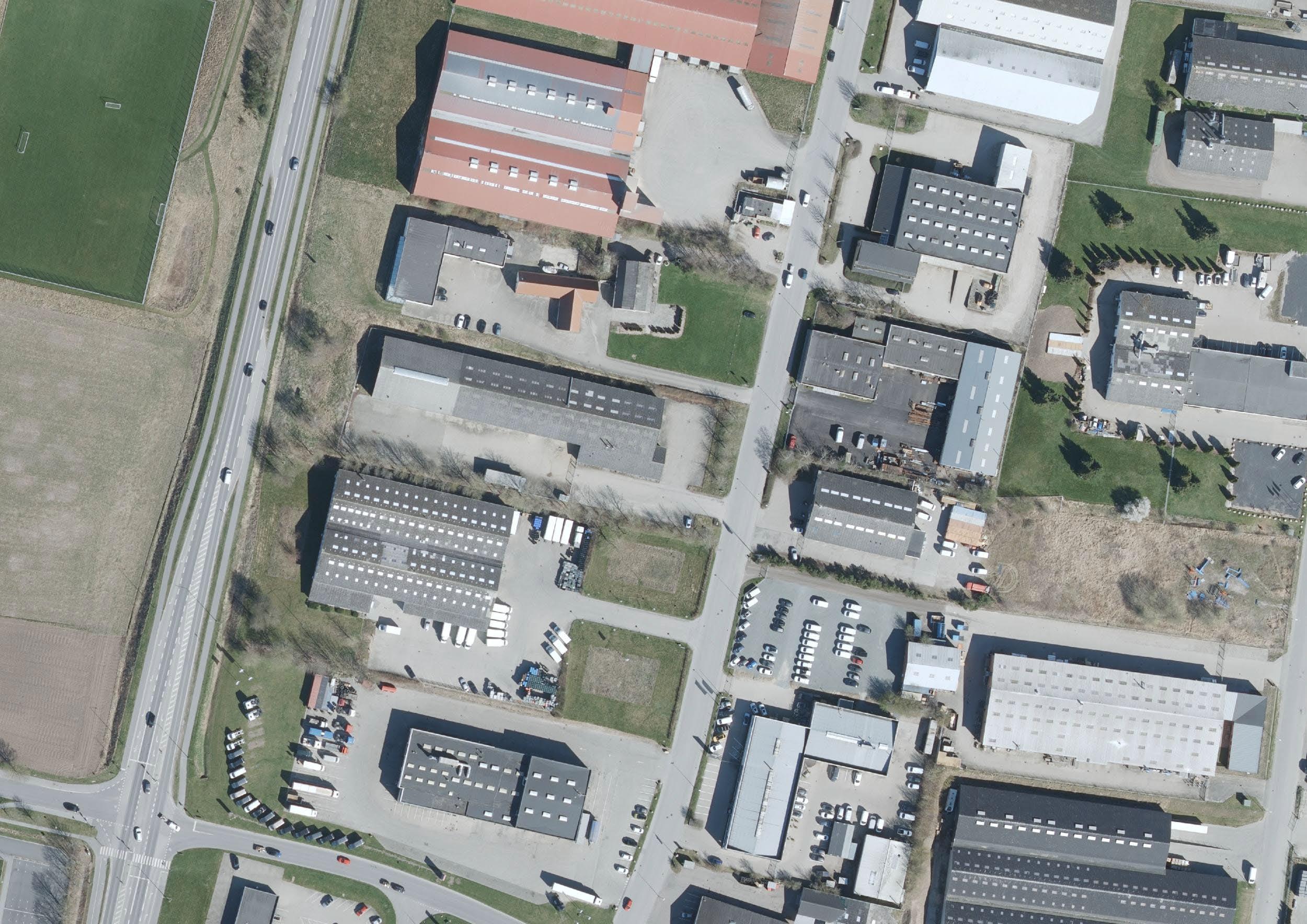 Grunden udgør 8.197 m² og er overvejende befæstet med gode forhold for parkering, oplag og manøvrering for både person- og varetransport. Dette understøtter ejendommens anvendelighed for virksomheder med behov for plads og gode logistikforhold.