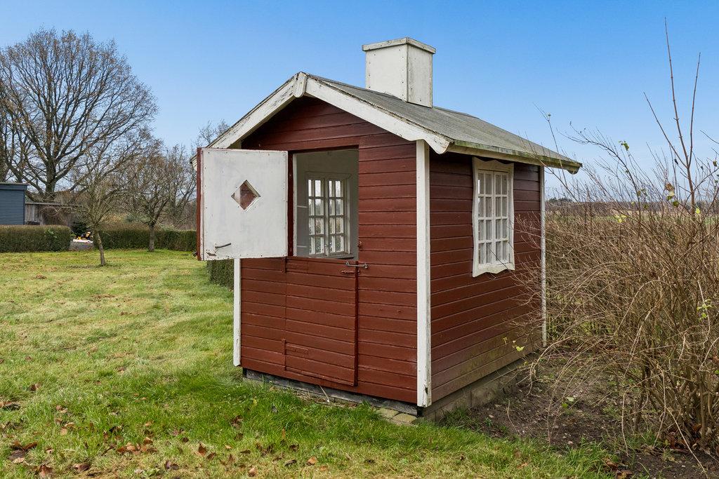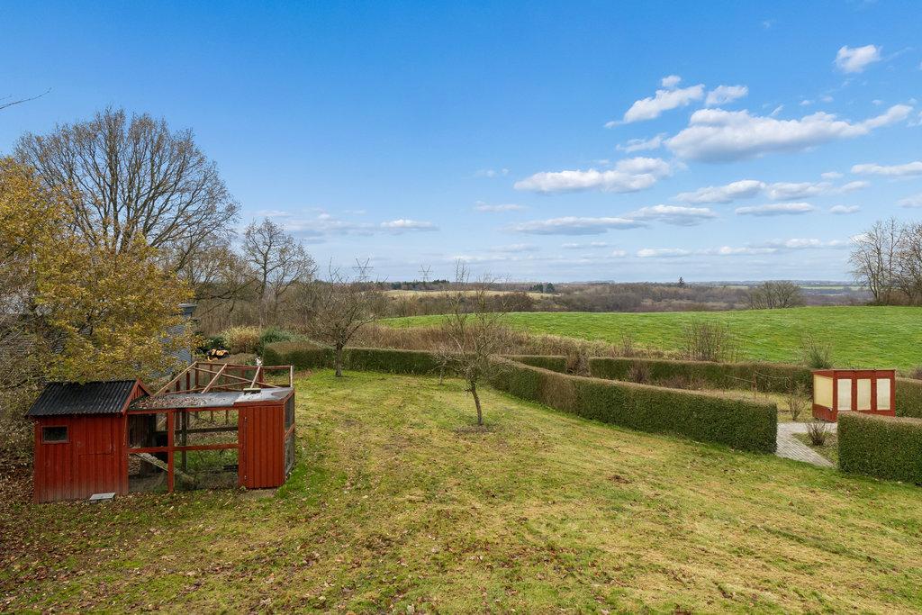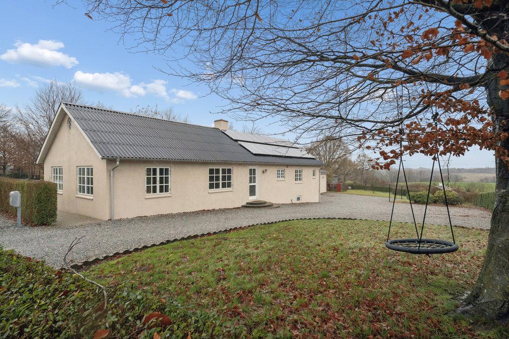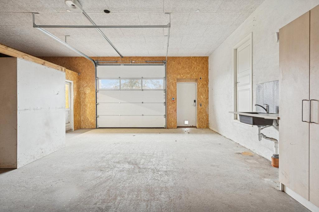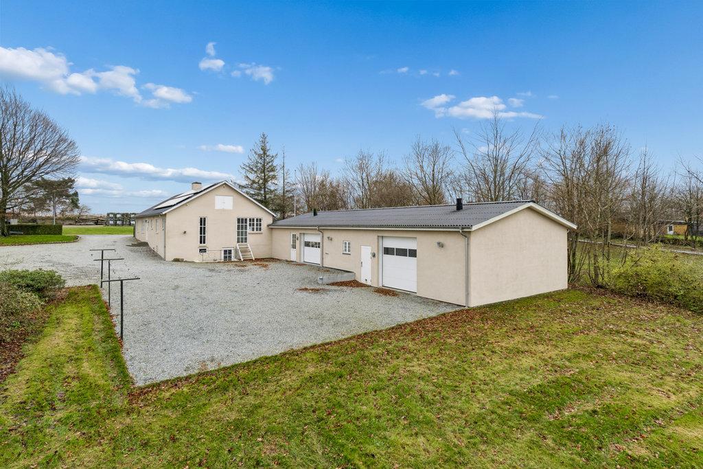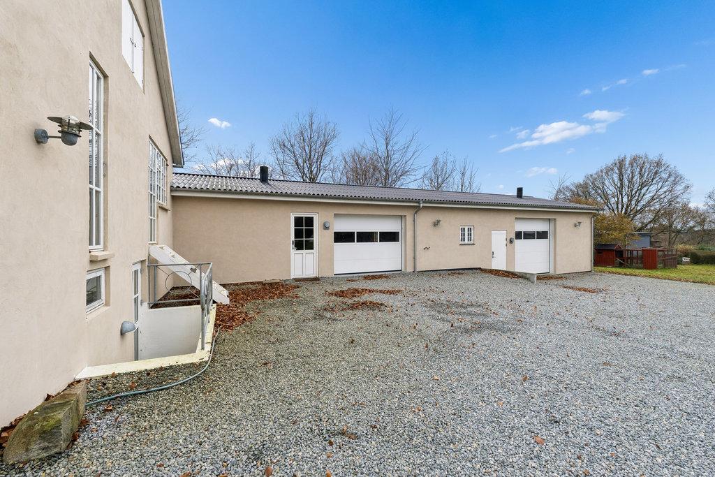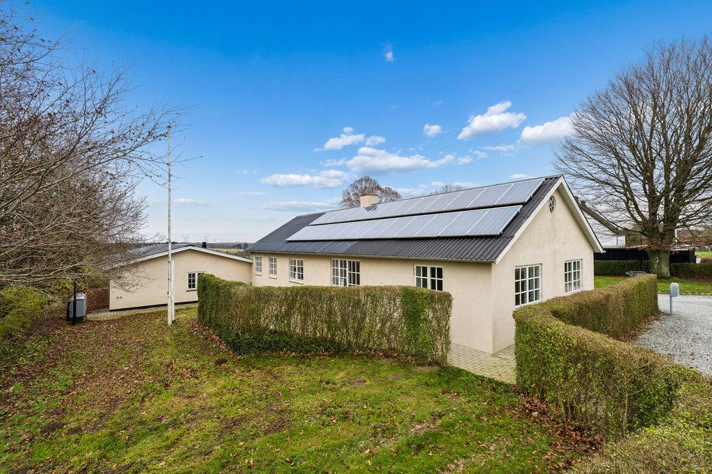 UdendørsmødesIafenstor,velanlagtgrundmedgræs,buskeogtræer.Modsydvestliggerterrassen medeftermiddags-ogaftensol,mensgaragebygningenpå160kvadratmetergiverpladstilbiler,hobby, værkstedellergæsteafdeling,ogharegetbadeværelsesamtgulvvarme.Solcellerpå6kWbidragertilet positivtenergiregnskab.