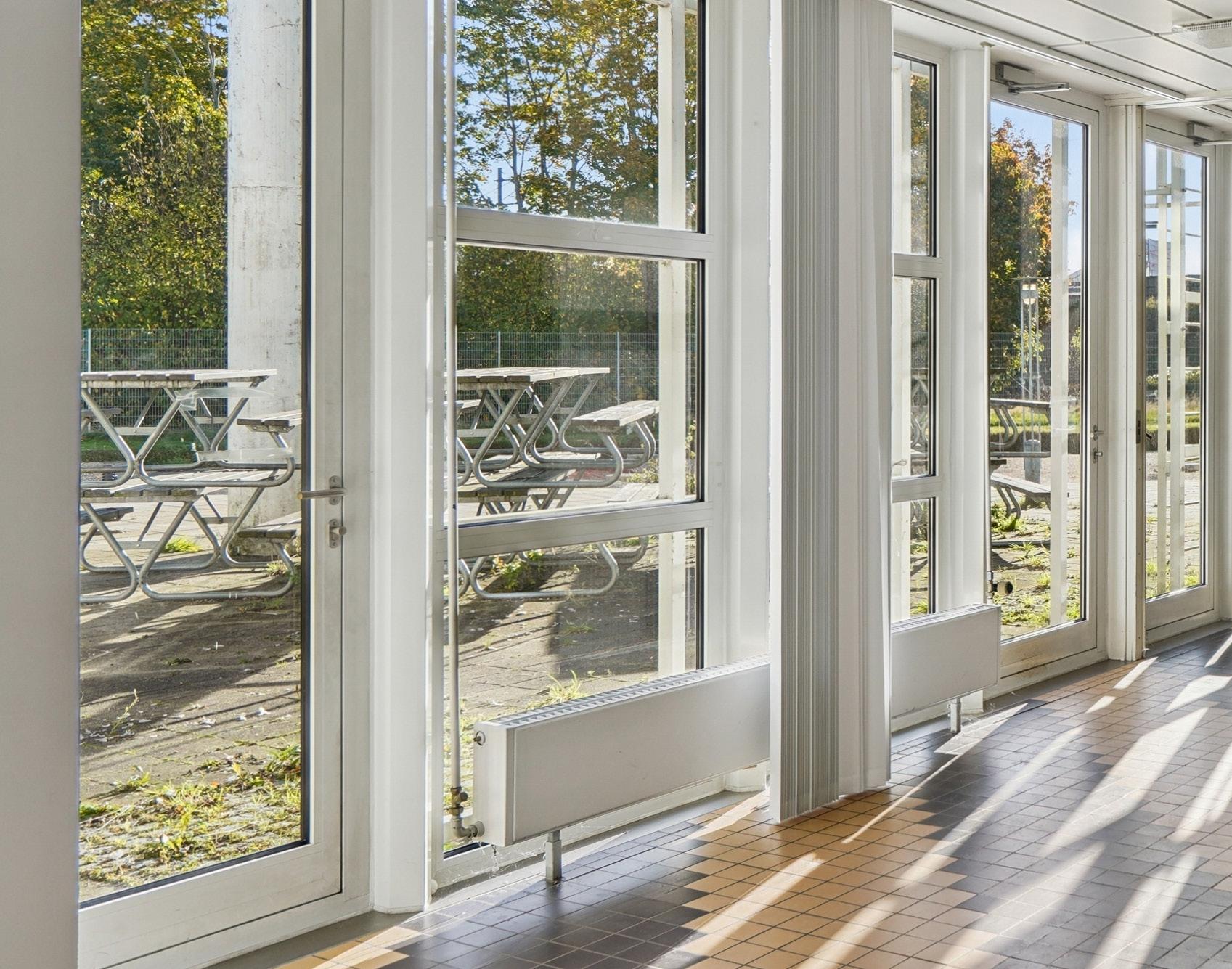 Hovedbygningen fremstår med et moderne og ensartet facadeudtryk. Bygningen er kendetegnet ved rektangulære vinduespartier og rytterlys som sikrer et godt dagslys i bygningen og bidrager til ejendommens arkitektoniske karakter.