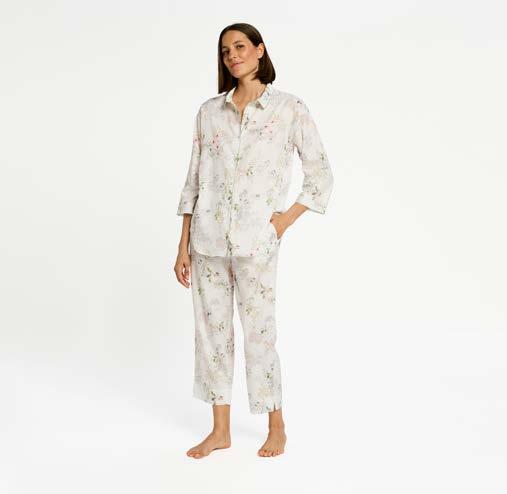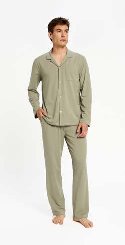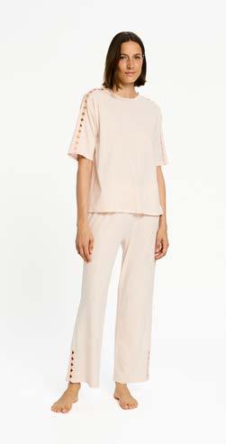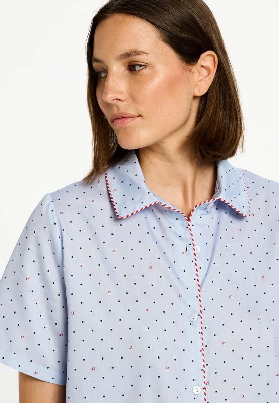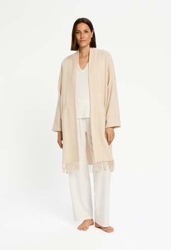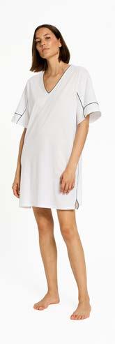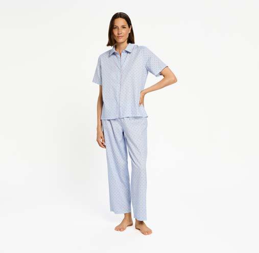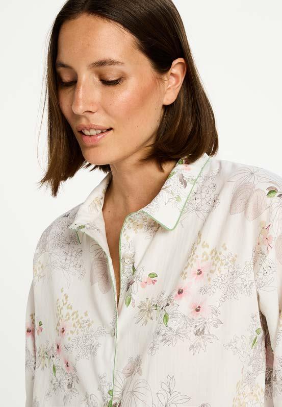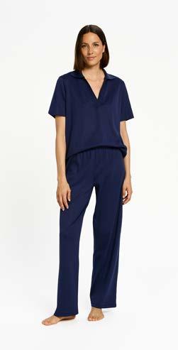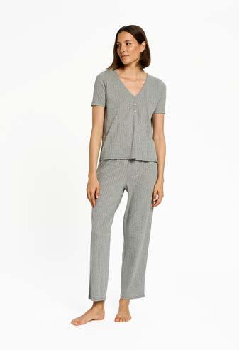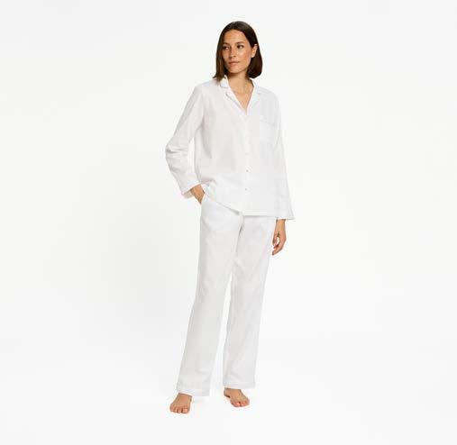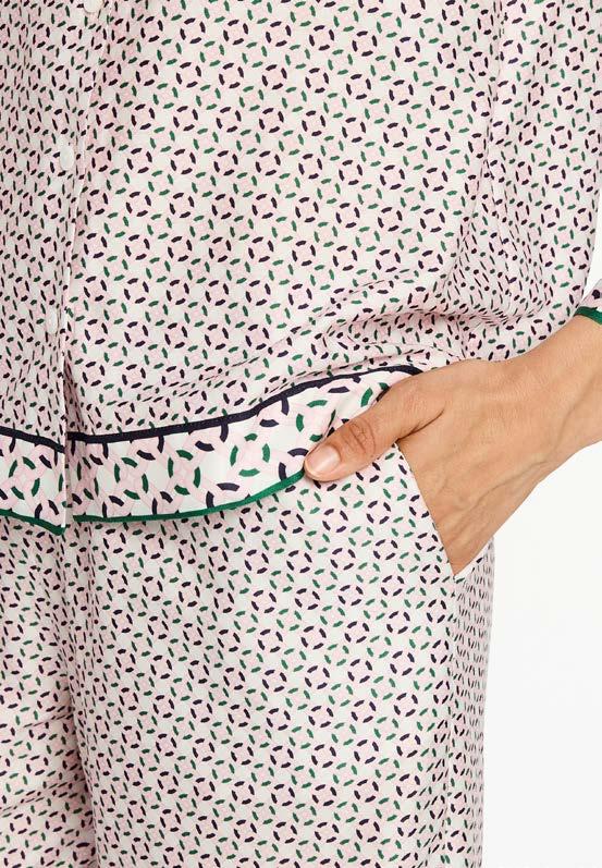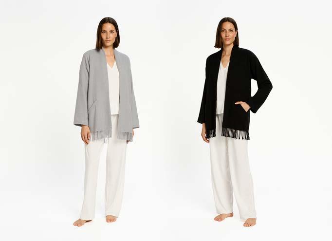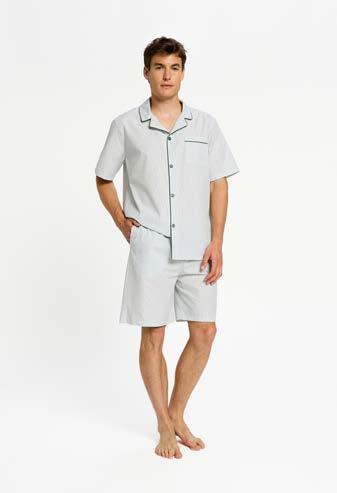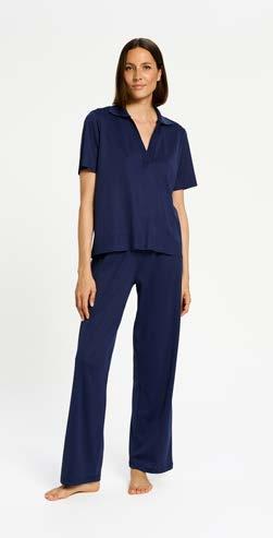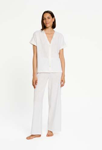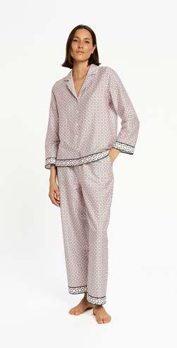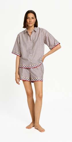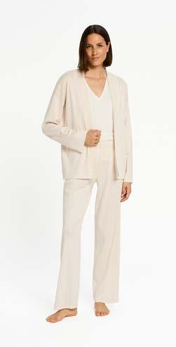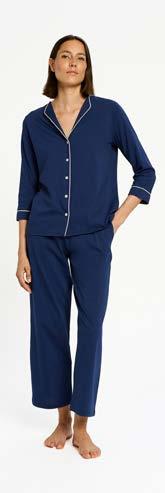 A line that mixes absolute comfort with understated elegance. Soft and fresh cotton knit. Contrasted piping adds a clean, graphic and timeless touch to the silhouette. This season’s signature piece: a little suit-style cardigan on the pyjamas top.