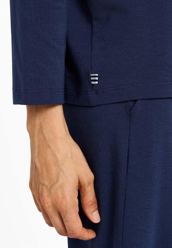 Onglet en bas de veste du pyjama long manches 3/4, gage de savoir-faire.