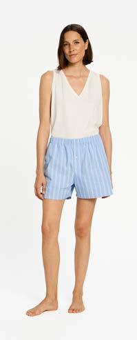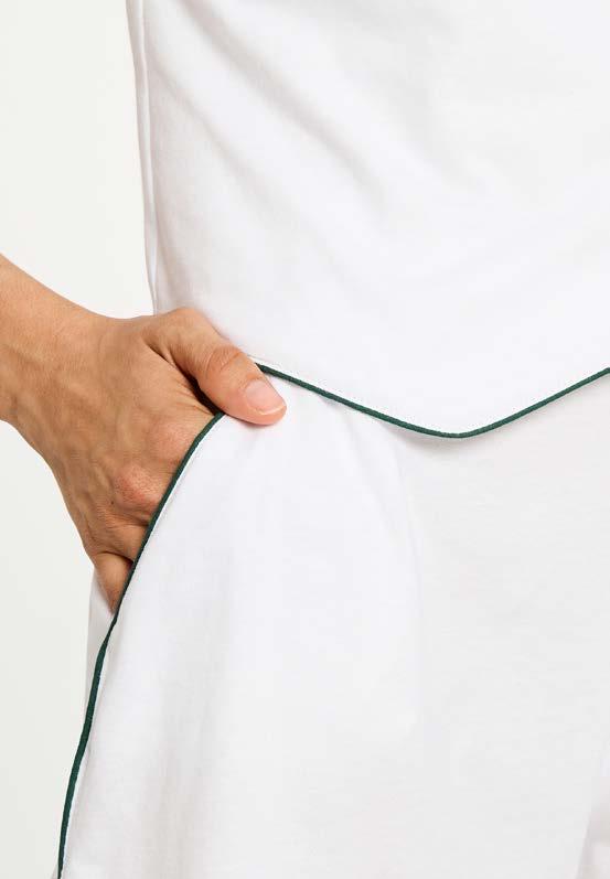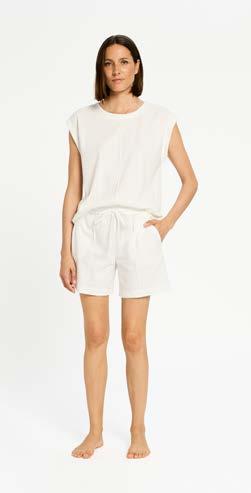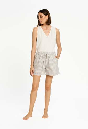 Une ligne qui conjugue confort absolu et élégance discrète. En maille de coton douce et fraîche. Le jeu de passepoil contrasté signe la silhouette d’un trait net, graphique et intemporel. La pièce phare de la saison : un petit gilet façon costume comme haut de pyjama short.
