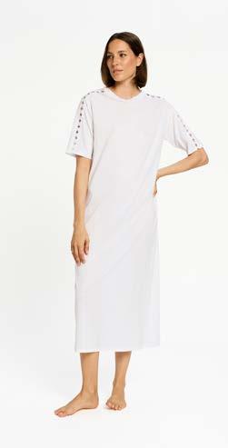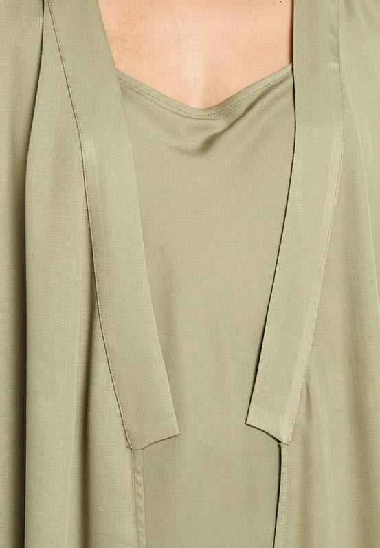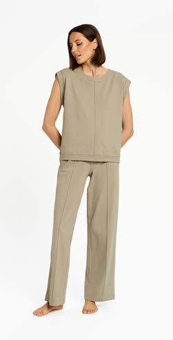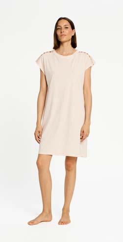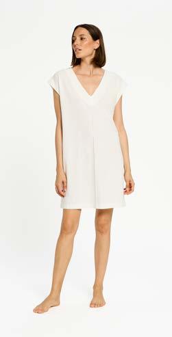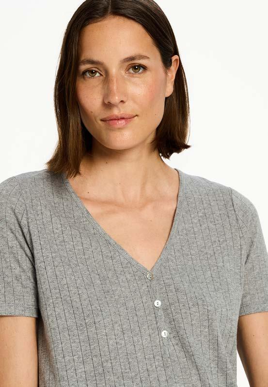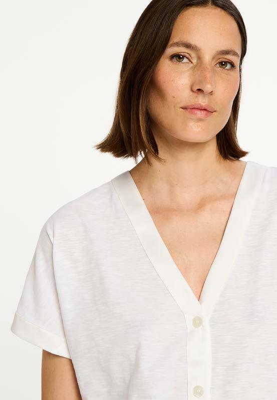 A modern style, effortless but elegant. In a light and textured slub knit. Satiny yokes, wide and shiny. A contrast of materials, between matte softness and silky shine.