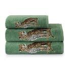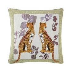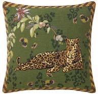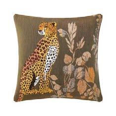 Mirrored or individual, these stately panthers are surrounded by shaded foliage and a shagreen patterned border. Design woven in Belgium.