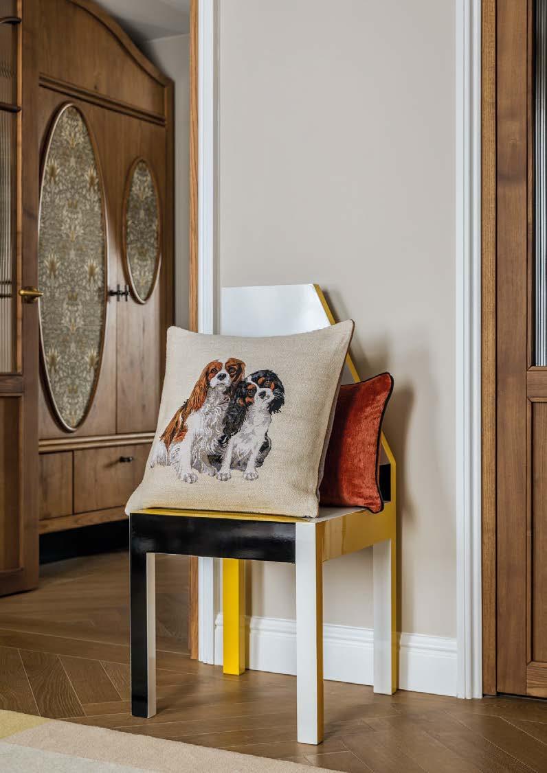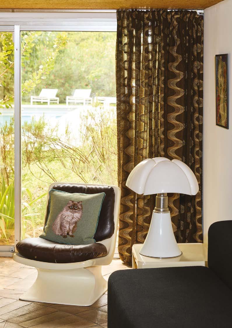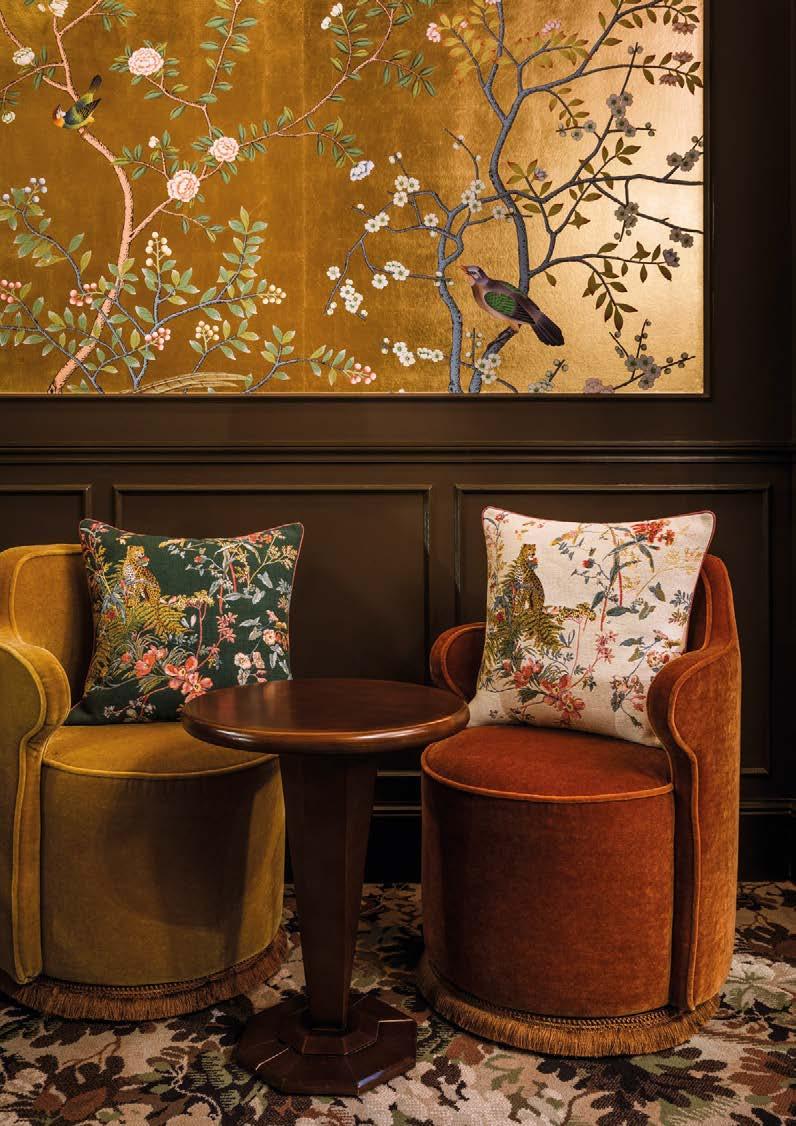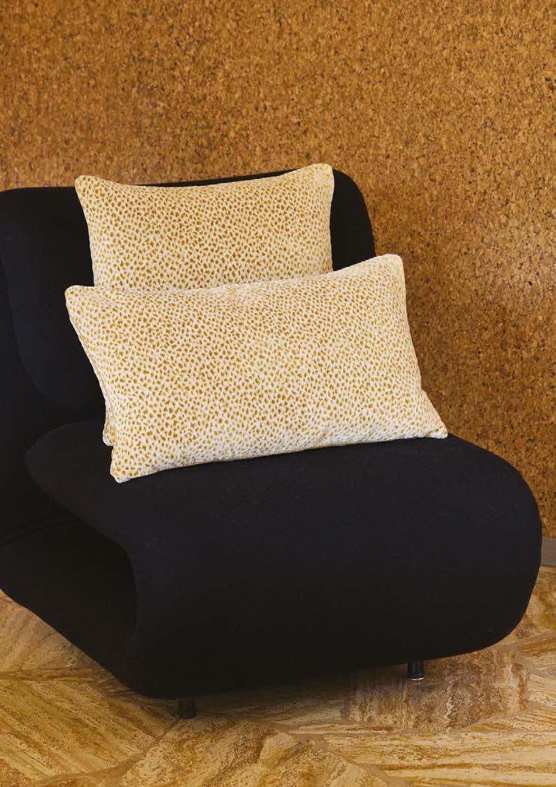 rappelle l’ornement de leur coi ure. Tapisserie en jacquard de coton.