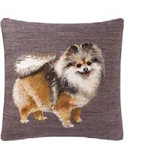 Tousled and happy, an adorable spitz is unleashed on two varieties of curly backgrounds. Jacquard tapestry woven in Belgium.